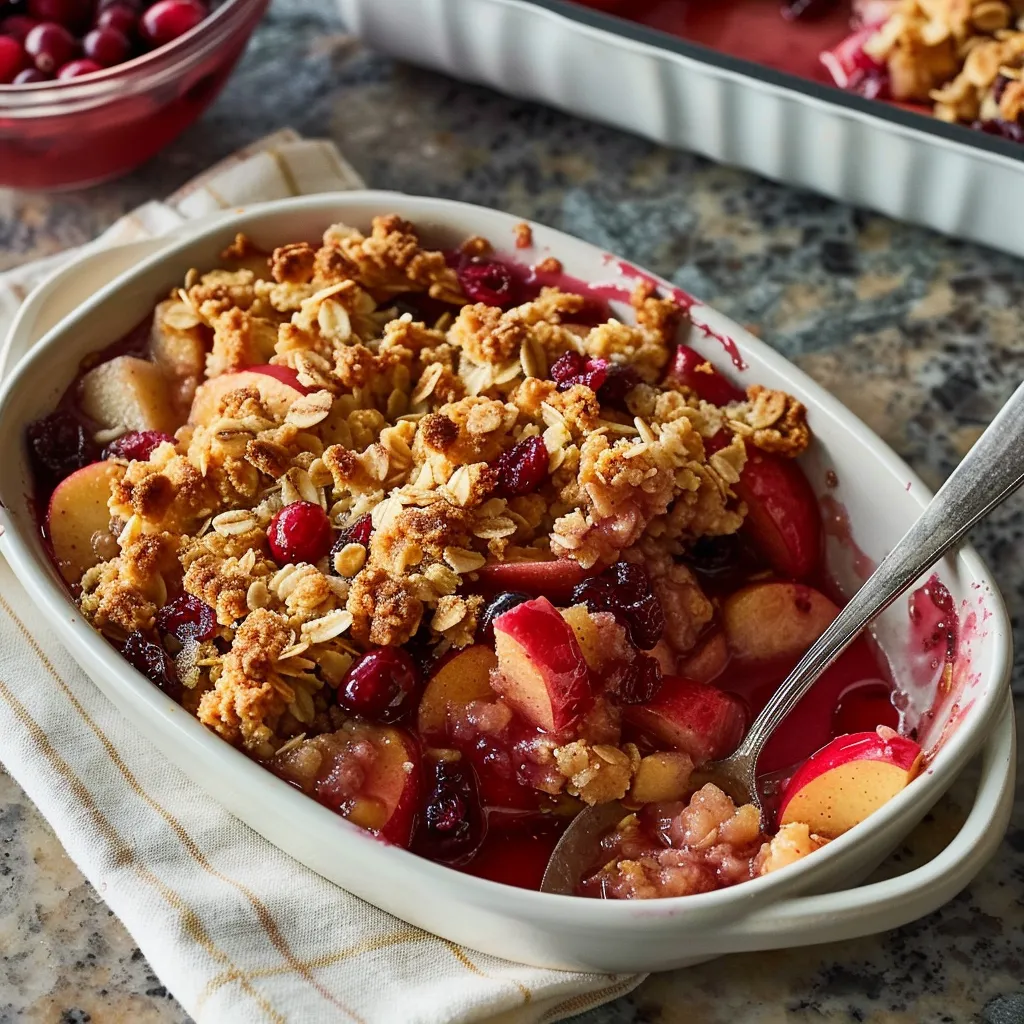 Savor the irresistible flavors of Apple Cranberry Crisp a delicious fall delight Perfectly baked with crunchy topping and warm spiced fruit