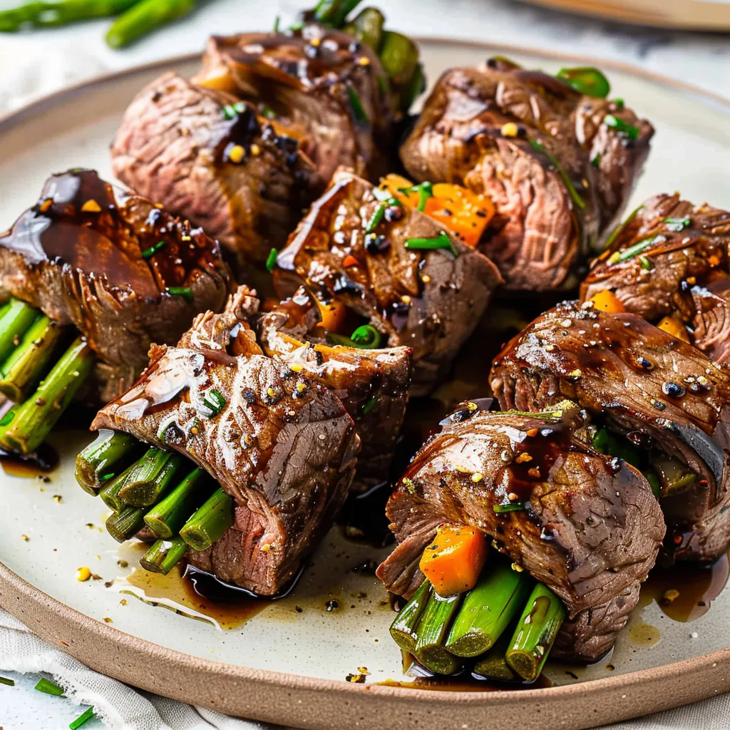 These steak rolls look stunning served on a simple wooden platter, drizzled with the glaze and topped with fresh herbs. As for leftovers, store any extras in an airtight container in the fridge for up to 2 days. Reheat gently in a pan to avoid overcooking the steak again—you want to maintain that tender texture!