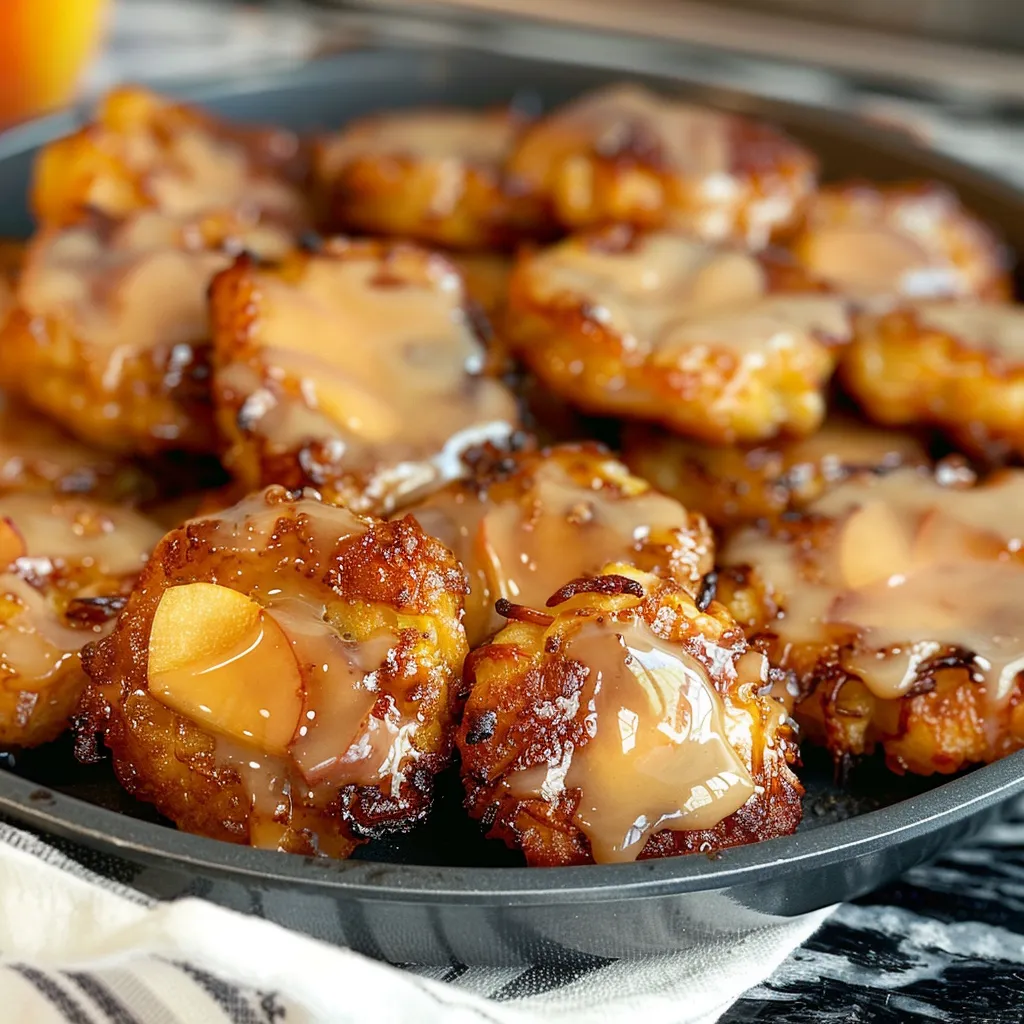 - Drizzle the glaze generously over the warm fritters, allowing it to set before serving.