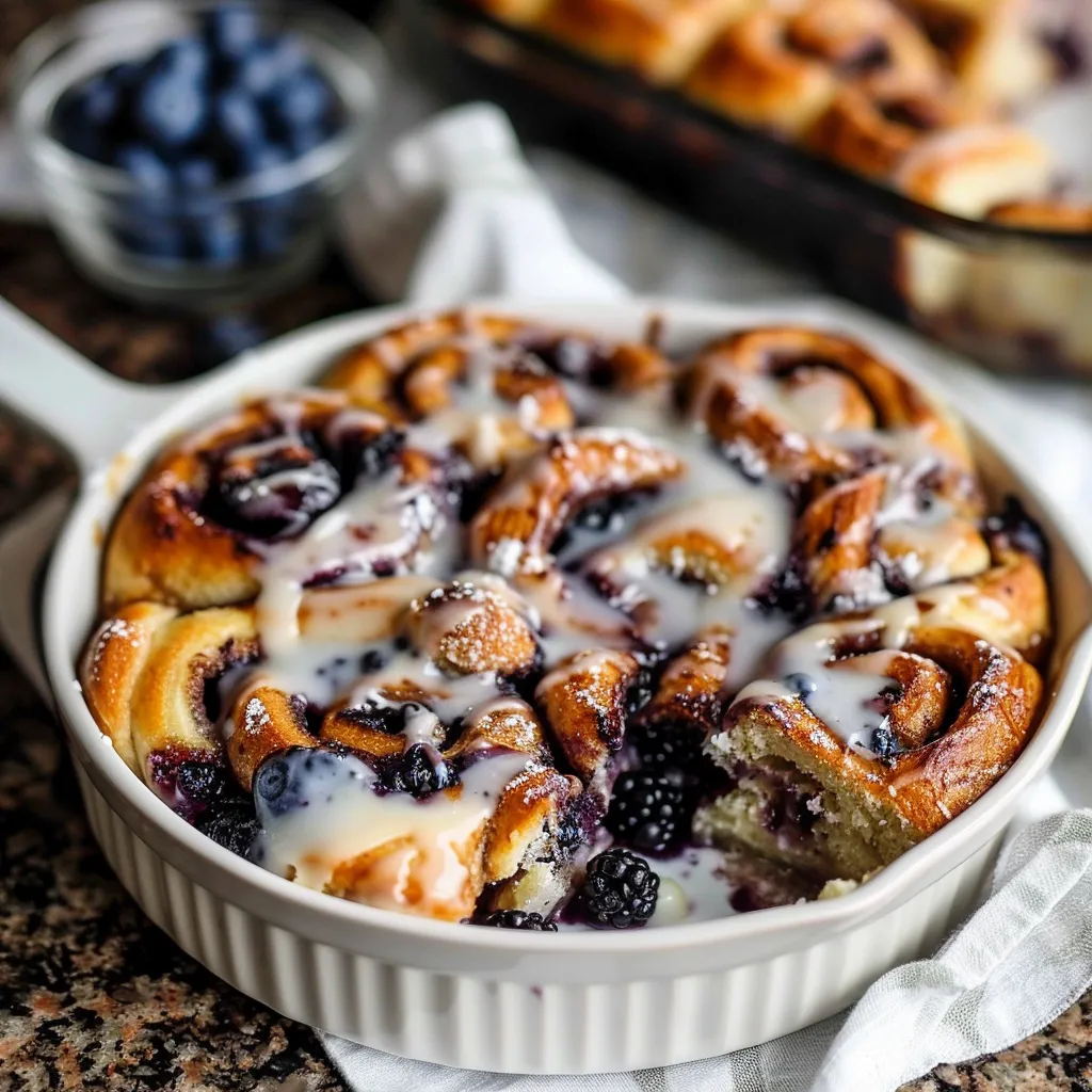 Enjoy a Sweet Soft Blueberry Cinnamon Roll Casserole perfect for brunch Bursting with flavors and easy to make Try it today for a cozy treat