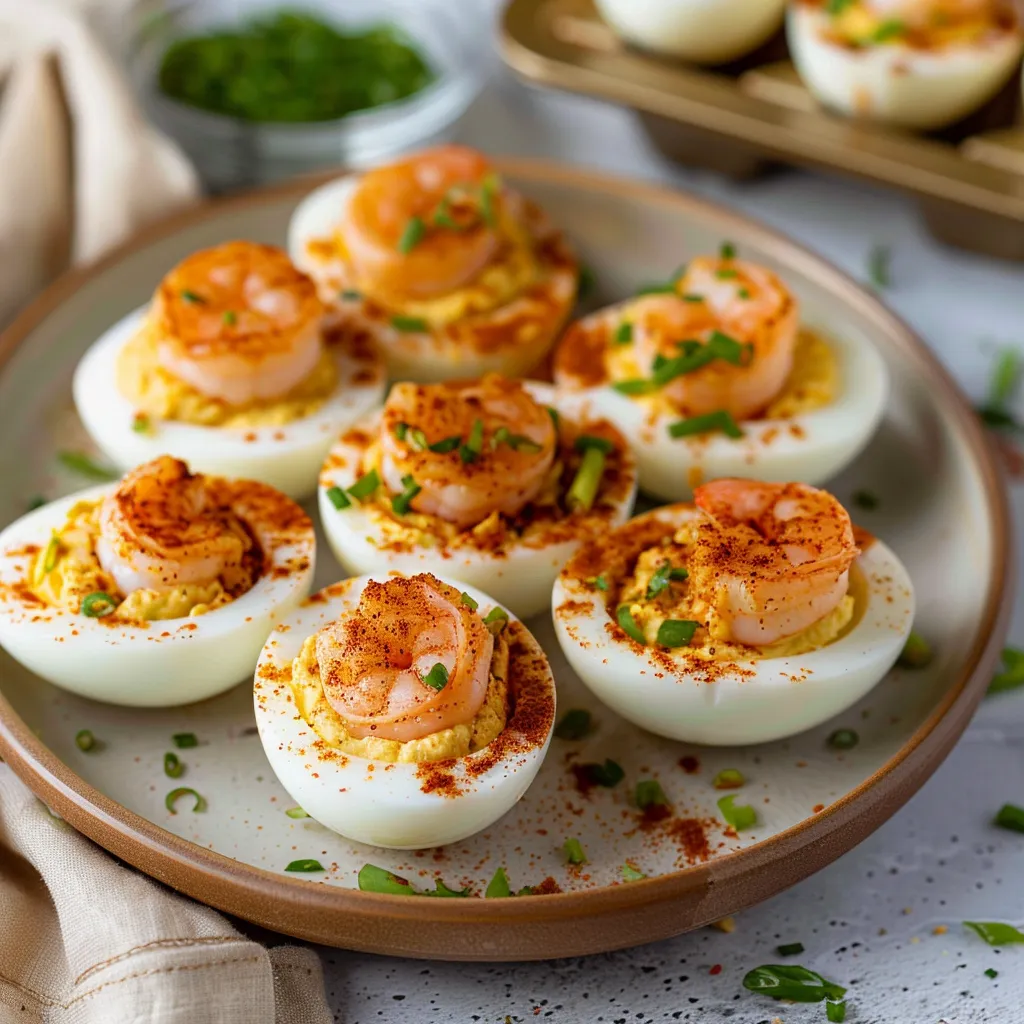 • Extra cooked shrimp: Placing a shrimp on top of each deviled egg can give a striking presentation.