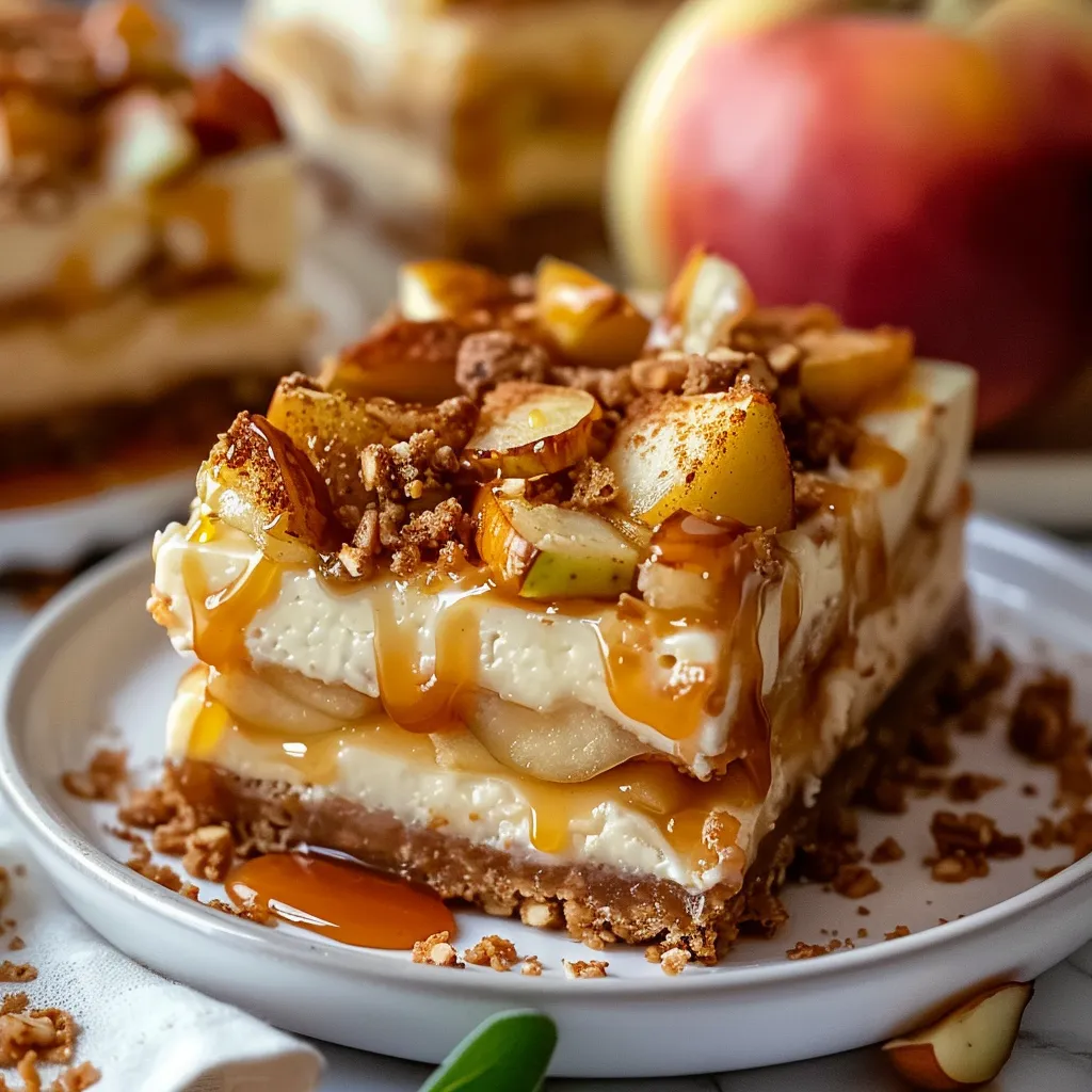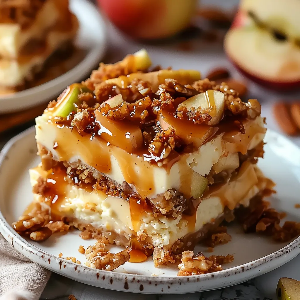 Indulge in these easy irresistible cheesecake bars Perfectly layered with caramel and apple they’re a must-try dessert for any occasion