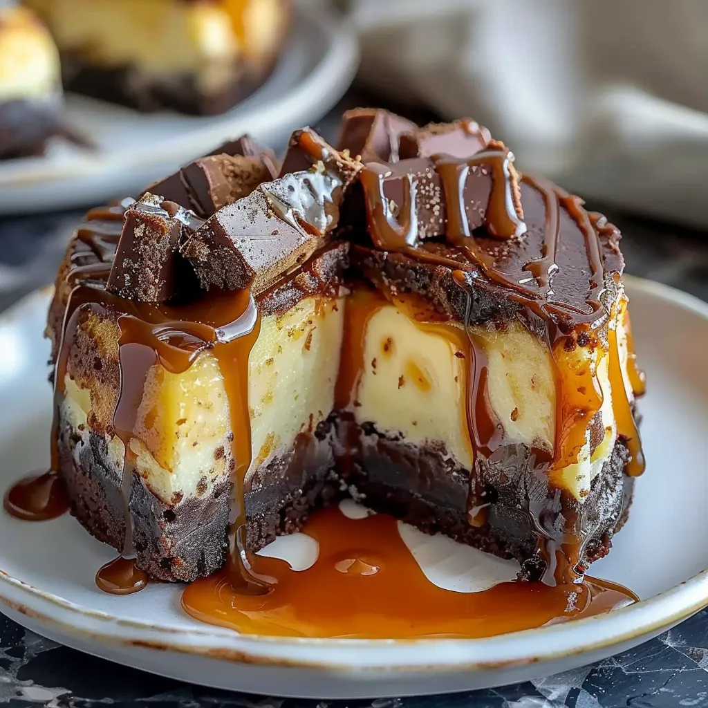 Imagine biting into a slice of this cheesecake and feeling the smooth, velvety cream cheese melt in your mouth, instantly followed by the rich chocolatey goodness of the brownie base. The sweetness of the caramel rounds it all out, creating a perfect balance of creamy, chewy, and decadent — it’s like a warm hug on a plate. Each forkful is an experience, reminiscent of lazy Sunday afternoons spent with loved ones, savoring the comforting flavors of home. I can almost hear those satisfied sighs as everyone takes their first bite…