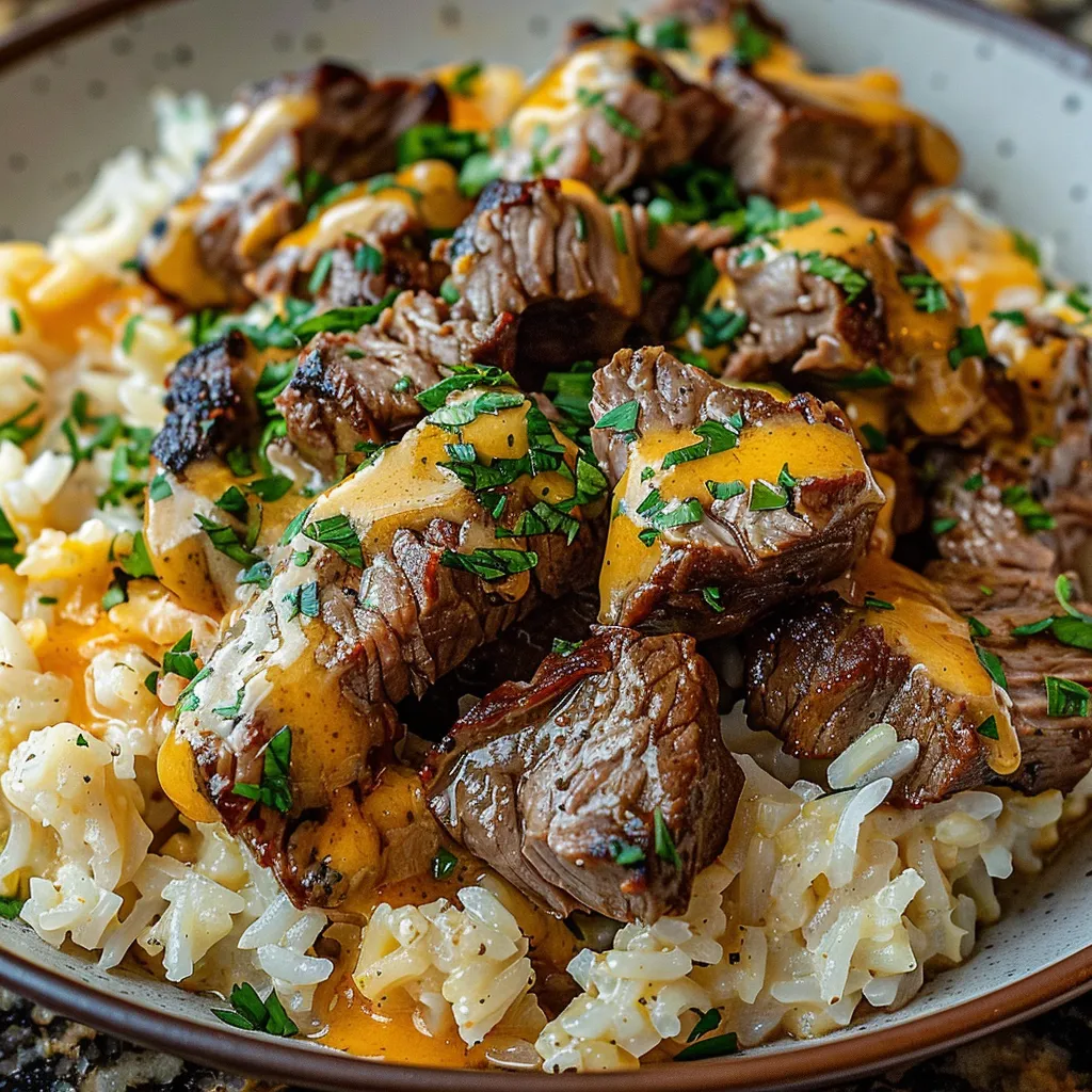 Savor Irresistible Cheesy Steak Rice A quick flavorful dish perfect for any meal Enjoy cheesy goodness and tender steak in every bite