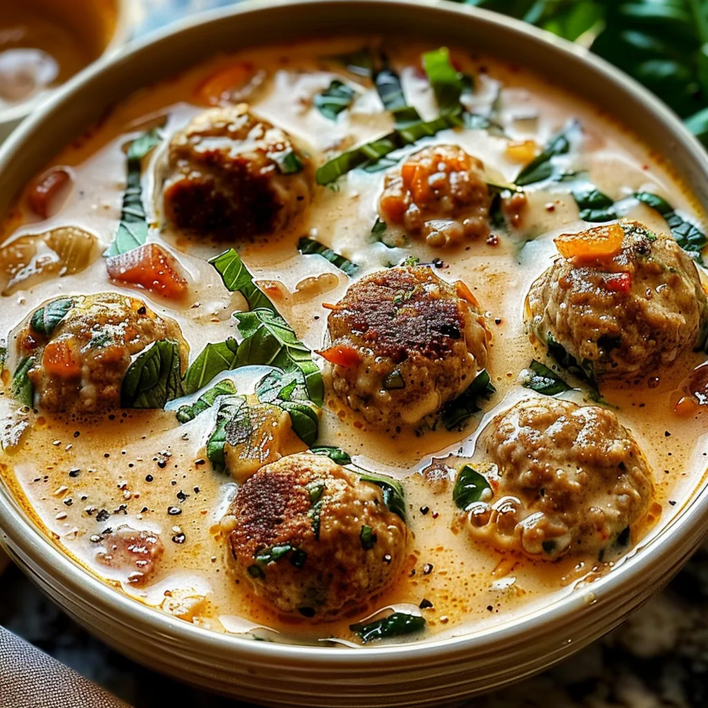 This recipe is inspired by the traditional Italian meatballs that have been a staple in many households. Over the years, I’ve combined these beloved flavors into a creamy, comforting soup that is both nourishing and satisfying. What makes this recipe special is not just its rich taste but also its simplicity; it can be prepared in under an hour, making it perfect for any weeknight dinner or even a festive gathering. It’s a meal that warms the heart and fuels the spirit, encouraging shared stories and laughter around the table.