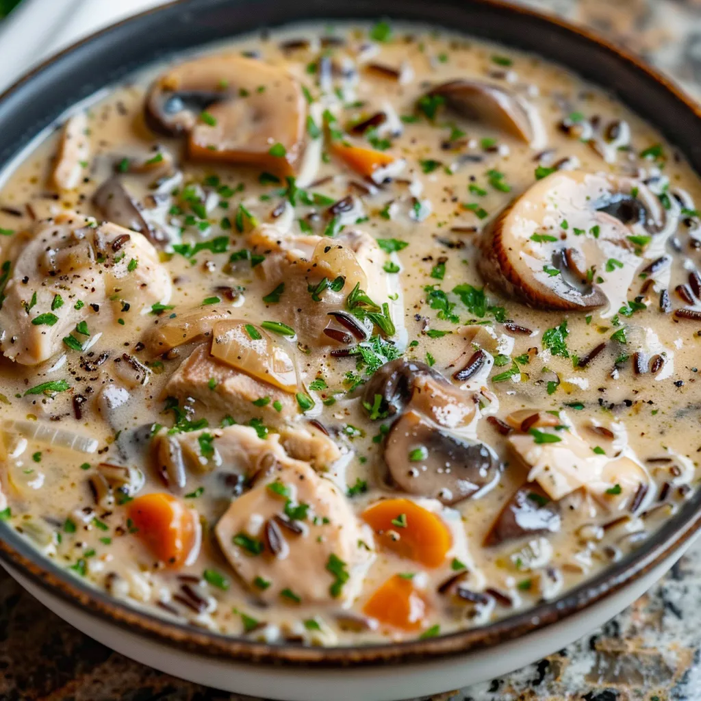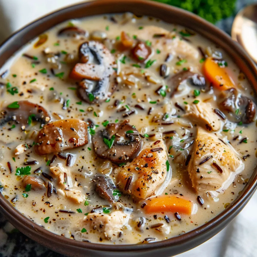 Keywords: Creamy Mushroom Chicken Soup, Wild Rice Soup, Cozy Soup Recipes