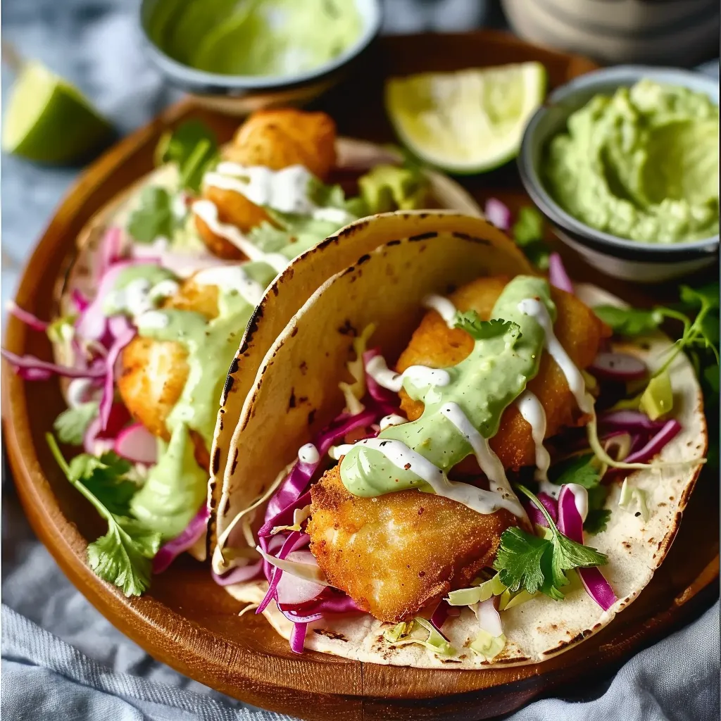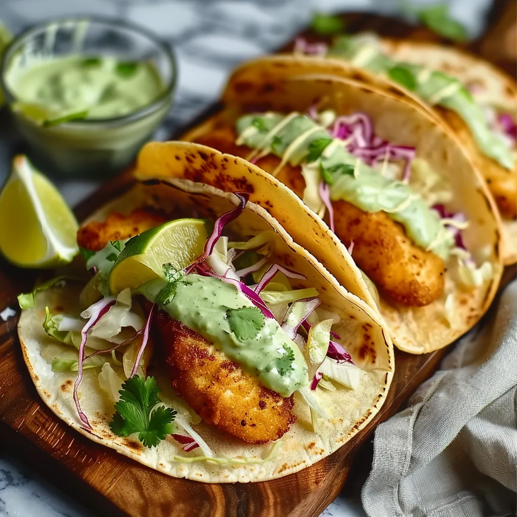 - Assemble and enjoy: Time to build your tacos! Start with a warm tortilla, add a piece of crispy fish, top with shredded cabbage, a drizzle of avocado crema, and cilantro, then finish with a squeeze of lime.
