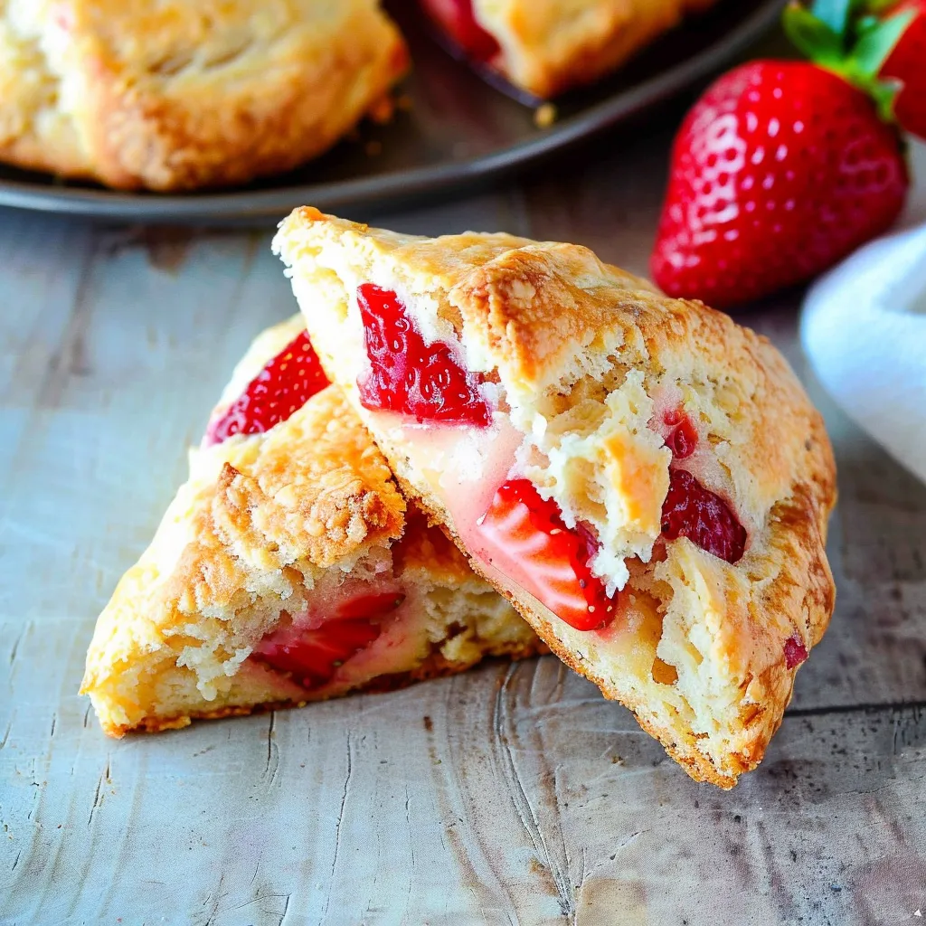 Delicious homemade strawberry scones with flaky layers and bursting with fresh strawberry flavor. Perfect for breakfast or afternoon tea.