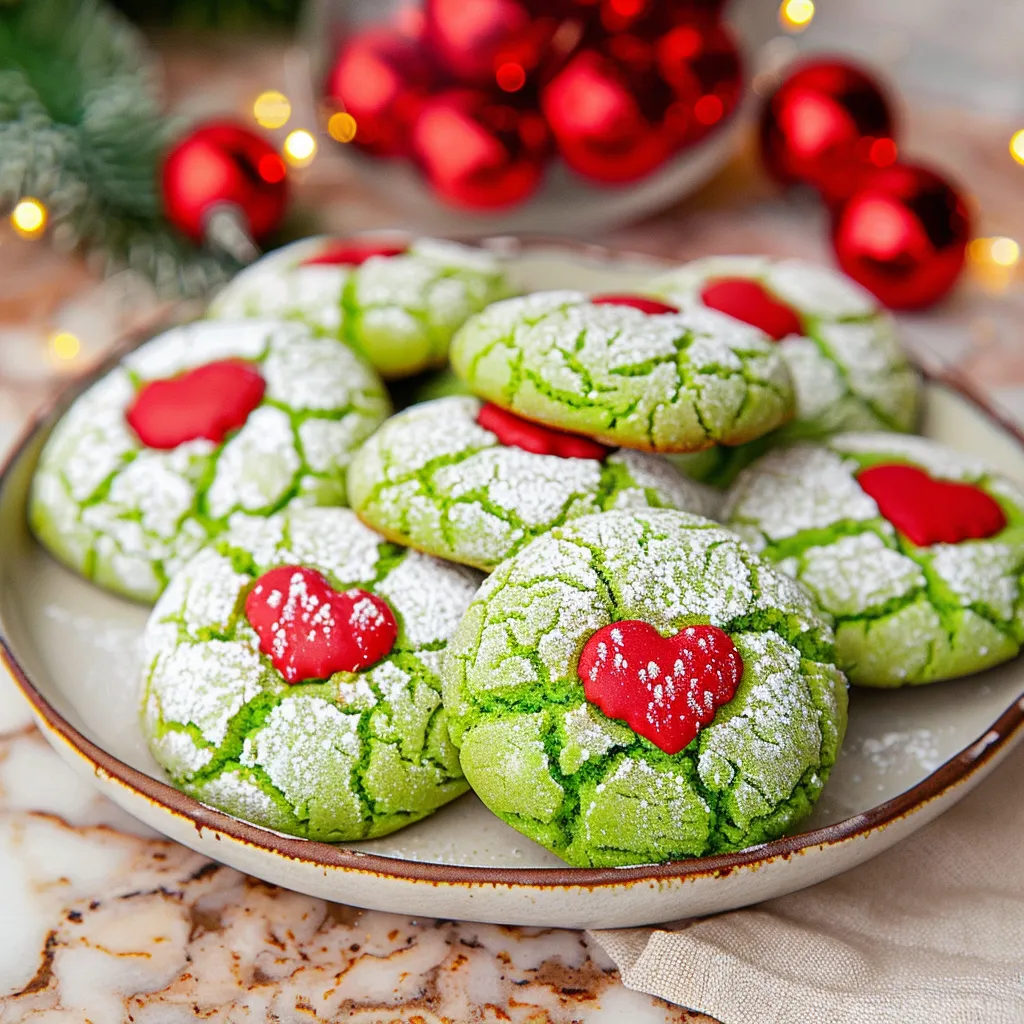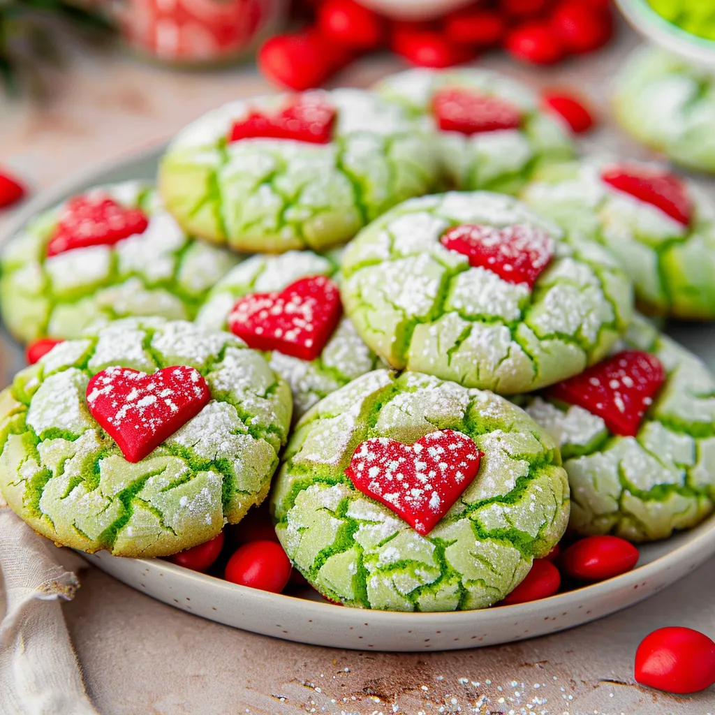 Delicious Easy Grinch Crinkle Cookies with Sweet Red Hearts