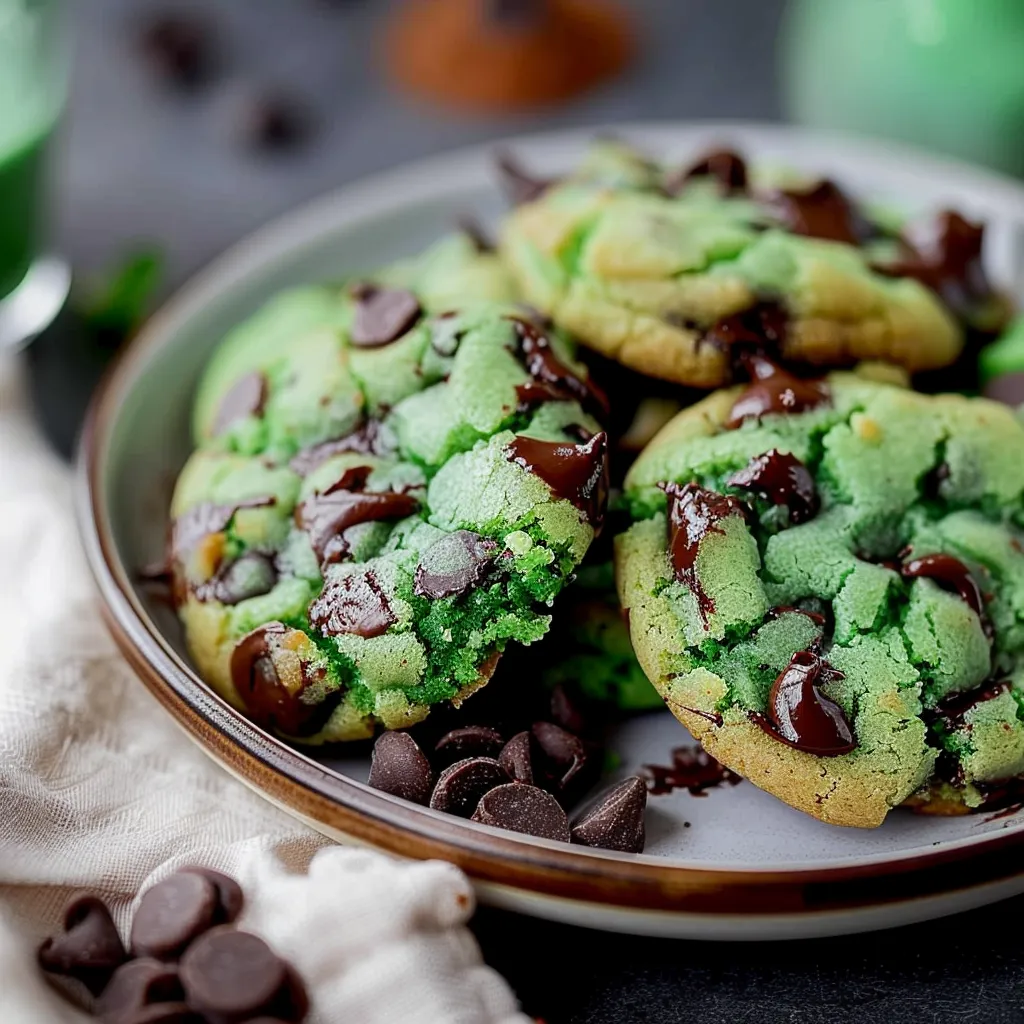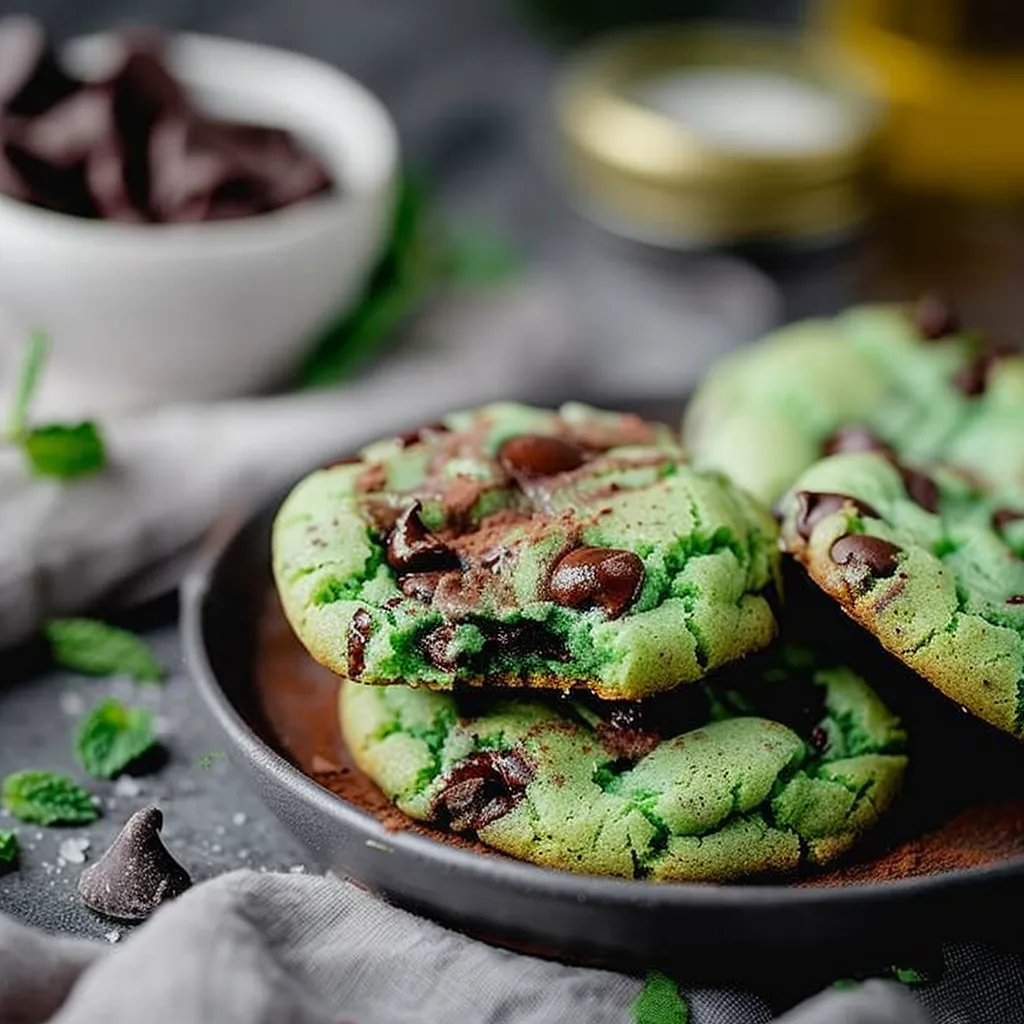 Delightfully chewy Mint Chocolate Chip Cookies bursting with minty freshness and rich chocolate pockets.