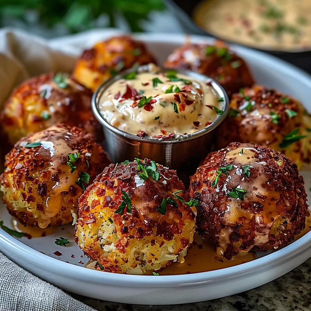 Savor Irresistible Reuben Balls paired with Spicy Thousand Island Dip Perfect for parties or a quick snack Delightful flavors await you
