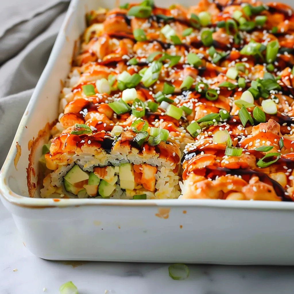 A comforting and easy-to-make dish that brings all the flavors of sushi into a warm bake, perfect for gatherings or family dinners.