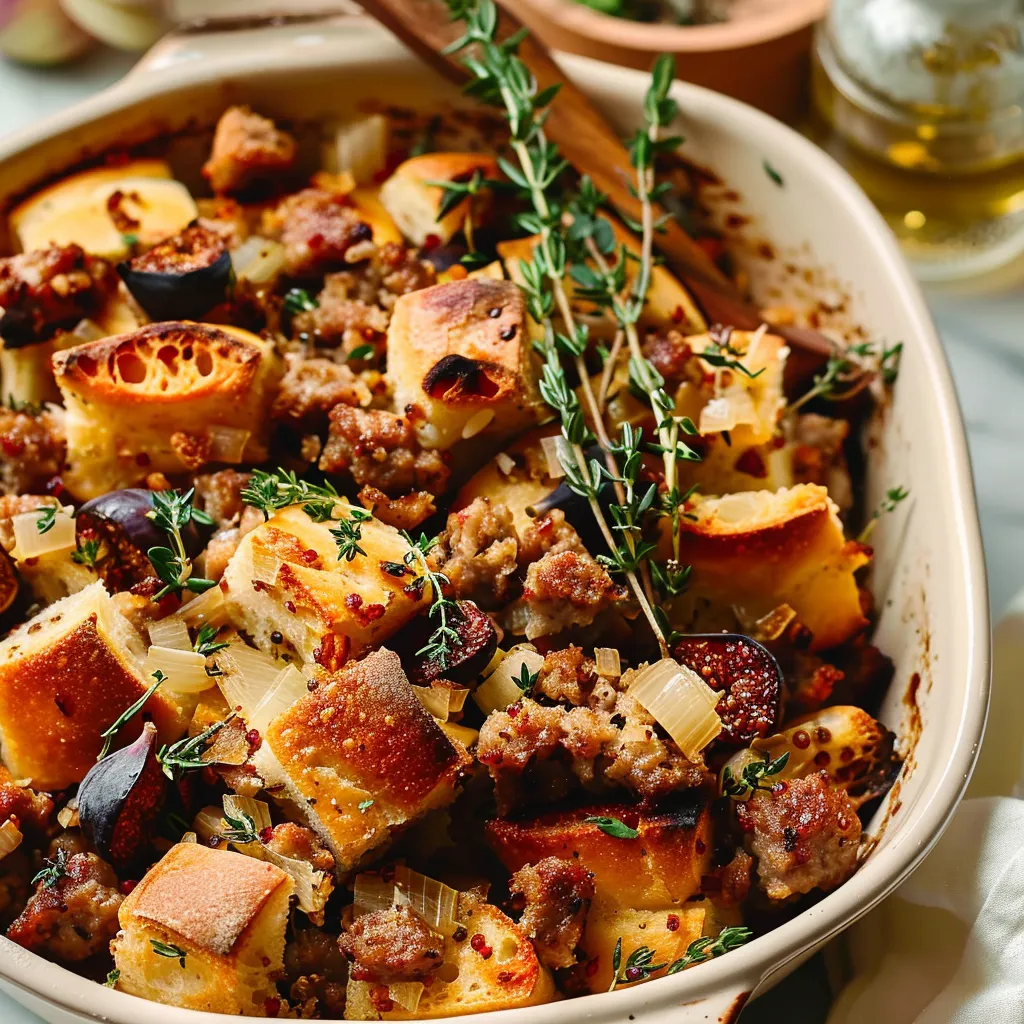 The Focaccia Fig and Sausage Stuffing is truly a unique dish that melds comforting flavors with a touch of gourmet flair. Its ability to adapt to different tastes and dietary needs makes it a go-to recipe for gatherings, ensuring that every occasion feels special. By trying this recipe, you’re not only crafting a delicious dish but also creating priceless memories with those you love. I encourage you to give this stuffing a try and share your experience or any personal adaptations in the comments below. After all, cooking is not just about food; it’s about sharing and creating moments that last a lifetime.