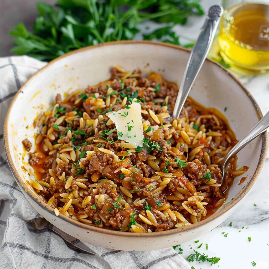 Trust me on this one—this dish checks all the boxes. It’s quick to prepare (hello, busy weeknights!), comforting in every bite, and can be enjoyed by the whole family. The orzo pasta soaks up the savory blend of spices and the richness from the ground beef, creating a satisfying meal that feels like a warm hug. Whether you’re looking to impress guests or simply want to whip up something tasty for yourself, this recipe is your go-to. Plus, it’s surprisingly versatile—who doesn’t love a meal that can adapt to what you have on hand?