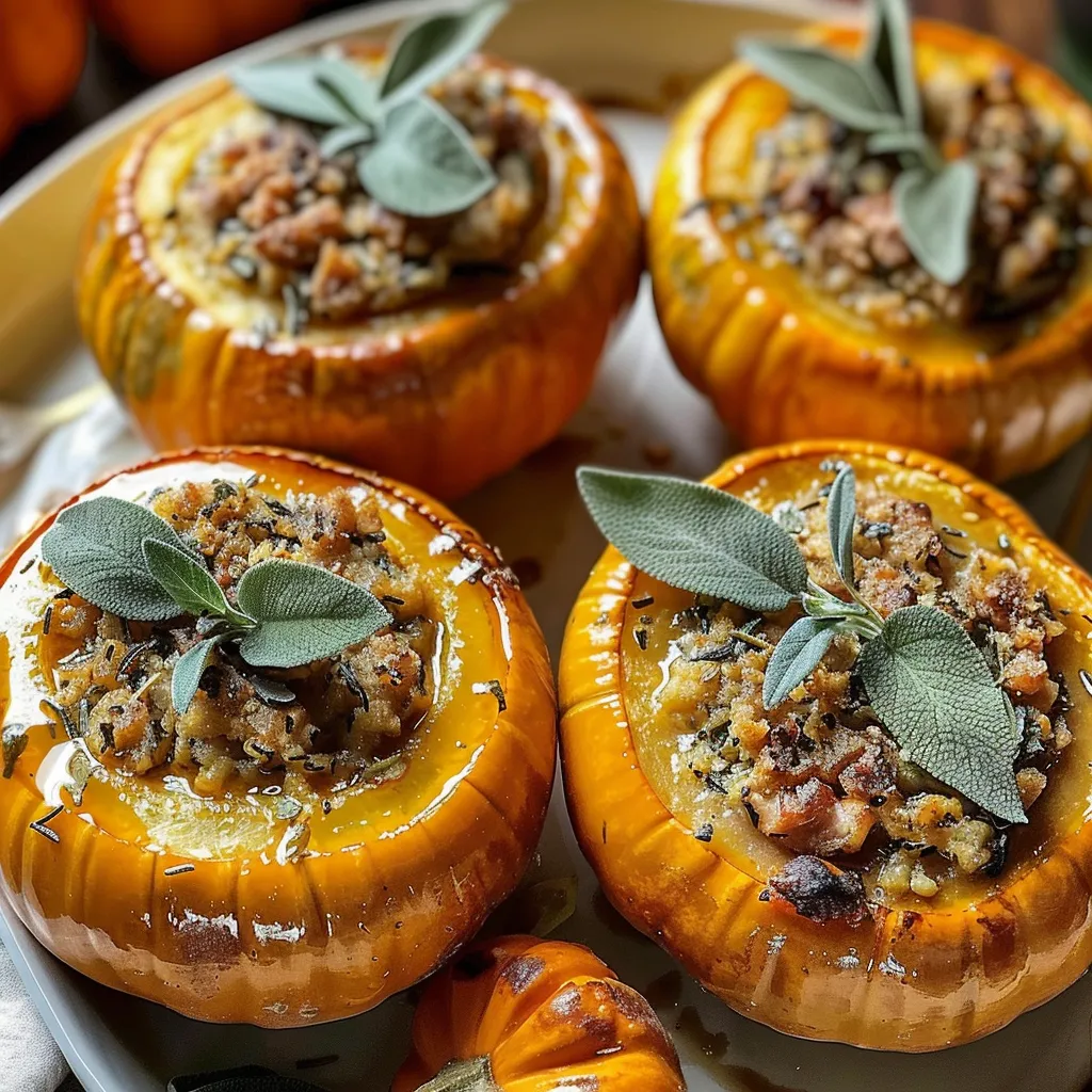 To serve, place the stuffed pumpkins on a beautiful platter and garnish with fresh herbs for a pop of color. And if you have leftovers (lucky you!), they store wonderfully in an airtight container in the fridge for up to three days. Simply reheat in the microwave or in a preheated oven until warmed through. You can even repurpose the stuffing—try it as a filling for tacos or atop a bed of greens for a fresh salad!