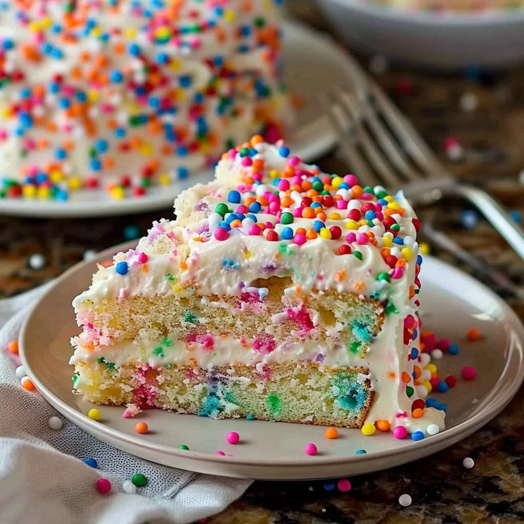 A delightful and joyful Funfetti Cake that combines colorful sprinkles and fluffy texture, perfect for celebrations or a sweet treat.