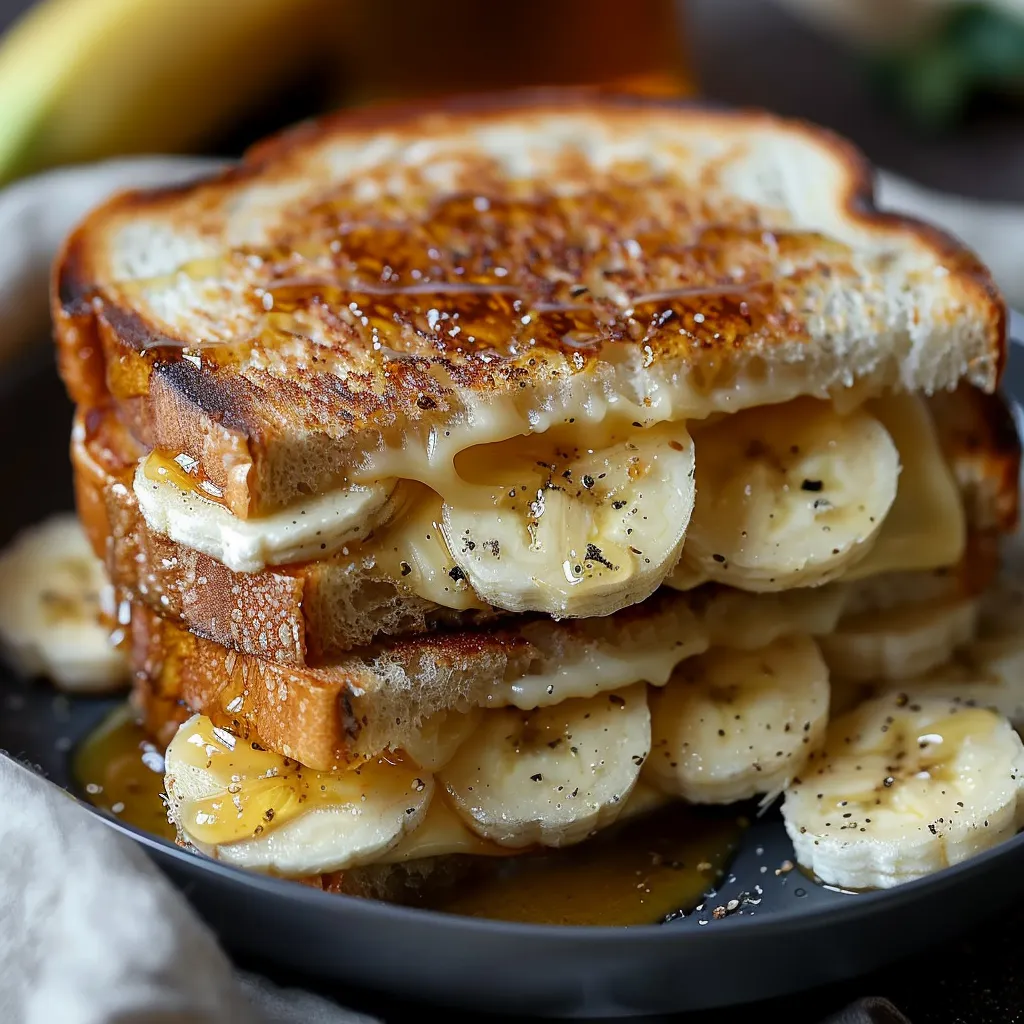 Indulge in a delightful combo of sweet honey and creamy banana in a grilled cheese sandwich thatll satisfy your cravings in every bite 155 chars