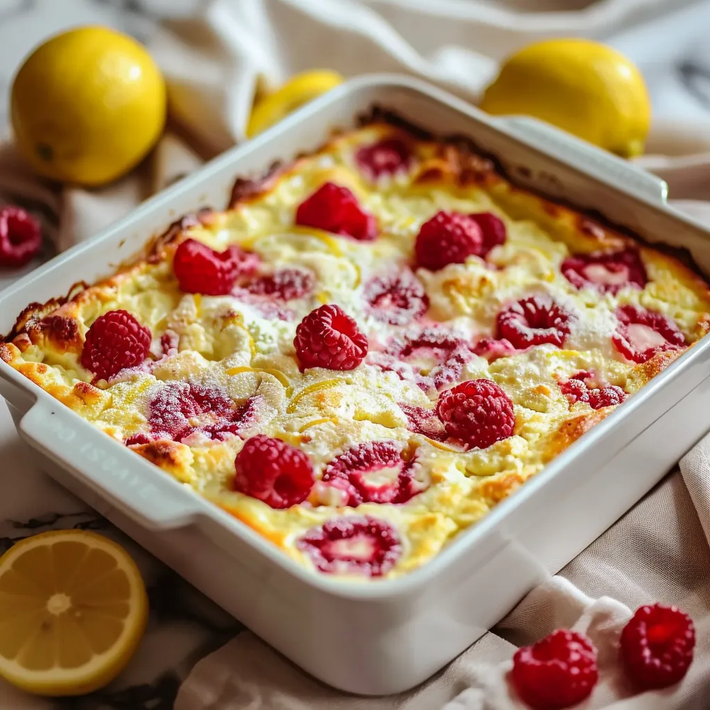 A heartwarming Lemon Raspberry Cottage Cheese Bake that combines creamy cottage cheese with tangy lemons and sweet raspberries, perfect for summer gatherings.