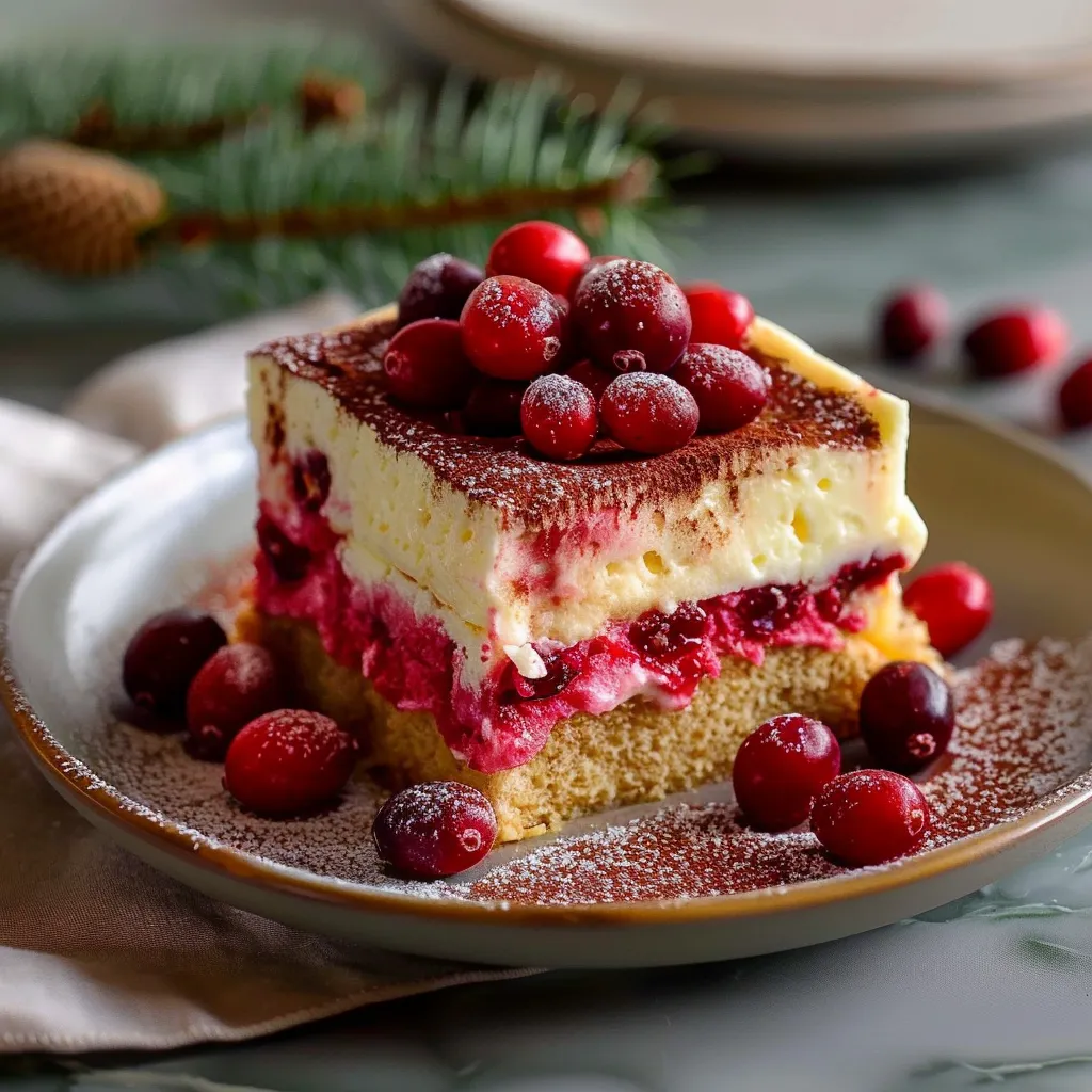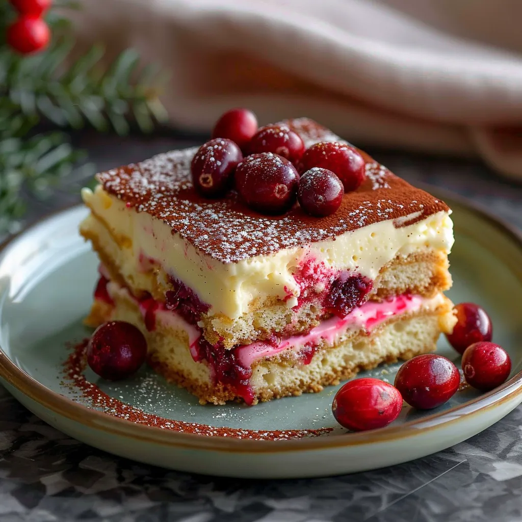 A delightful Luxe Cranberry Tiramisu that combines rich mascarpone with tart cranberries, offering a perfect balance for cozy gatherings.