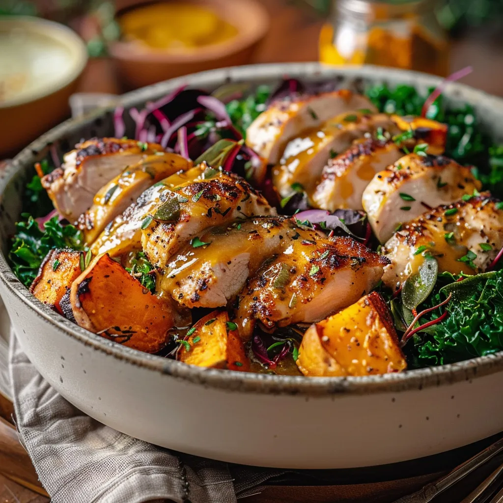 And there you have it—Maple Dijon Chicken & Roasted Sweet Potato Bowls! They’re the kind of meal that calls for cozy evenings, good conversations, and warm blankets. I can’t wait for you to experience the joy of this dish in your own kitchen. Remember, whether you’re making it for family, friends, or just yourself, it’s all about enjoying those delicious bites. Don’t forget to share your thoughts or any tweaks you make in the comments below. Happy cooking!