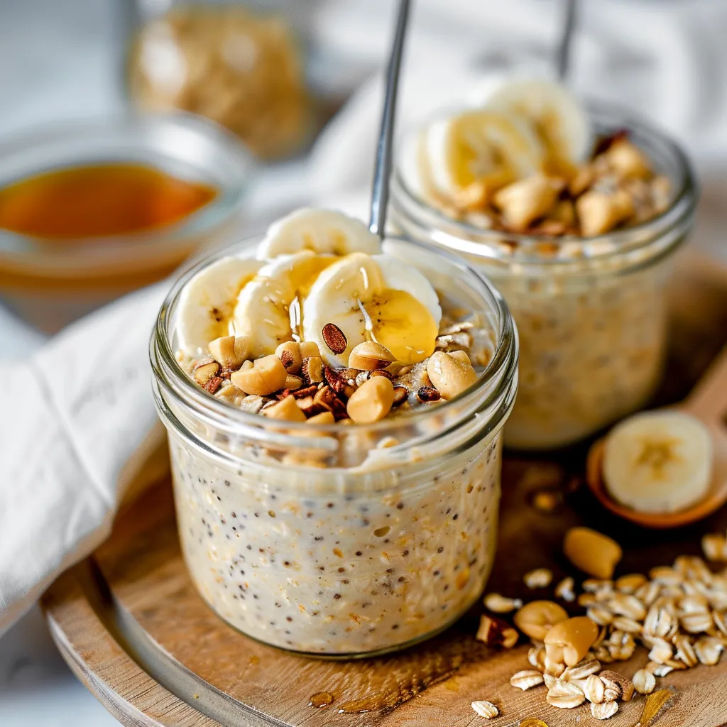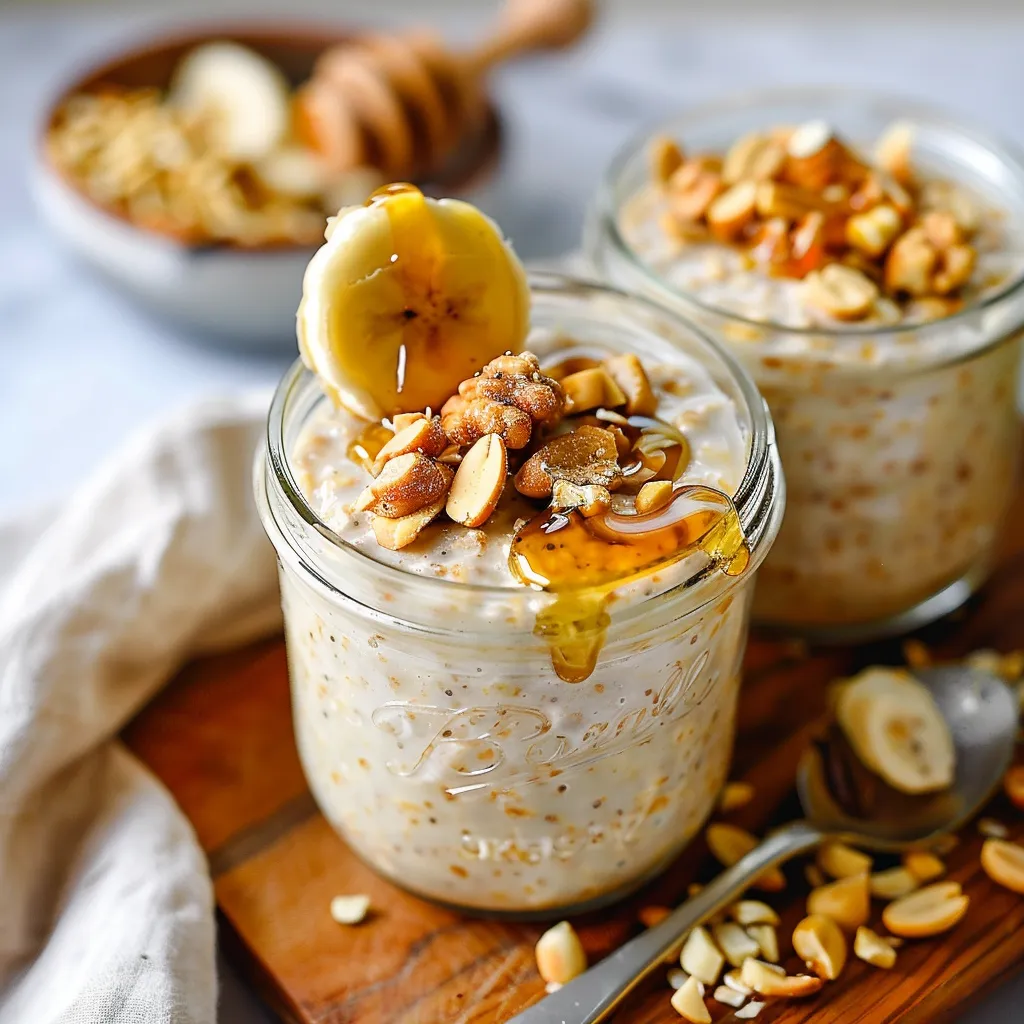 Start your day with our Delicious Overnight Oats with Peanut Butter and Honey! Simple, creamy, and packed with flavor—try it today for a quick breakfast!