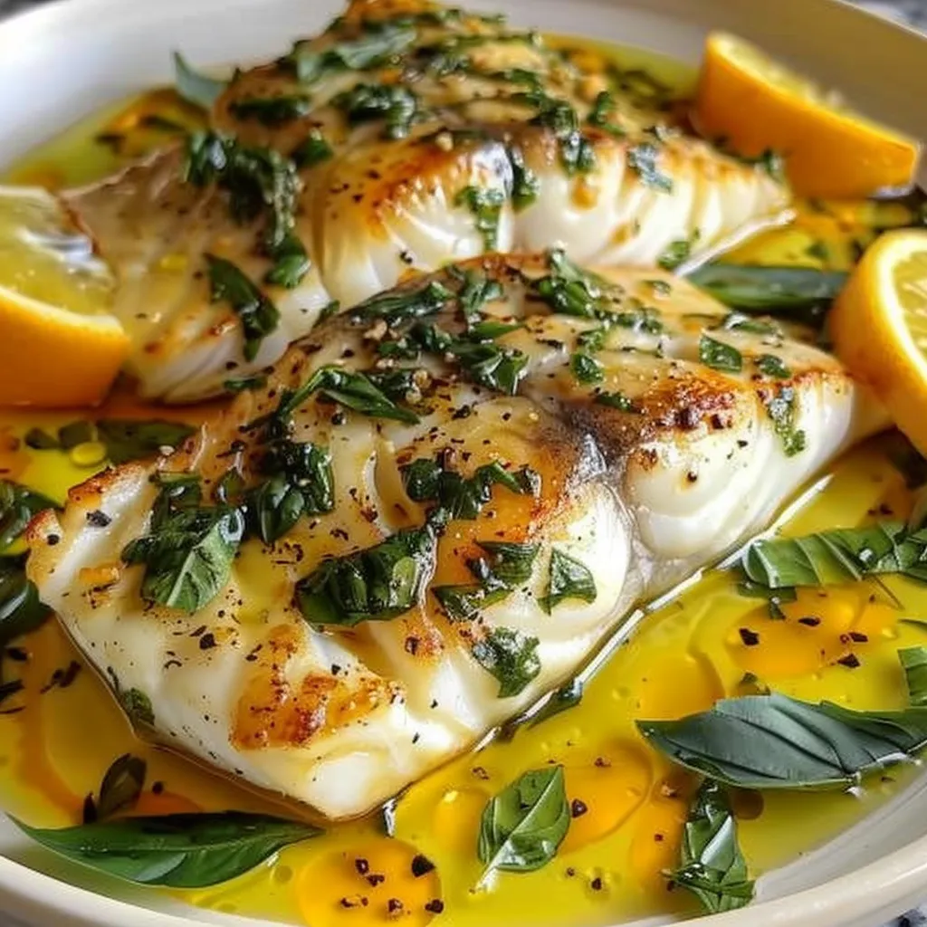 A comforting dish featuring flaky cod fillets paired with a vibrant citrus and basil butter sauce, perfect for any occasion.