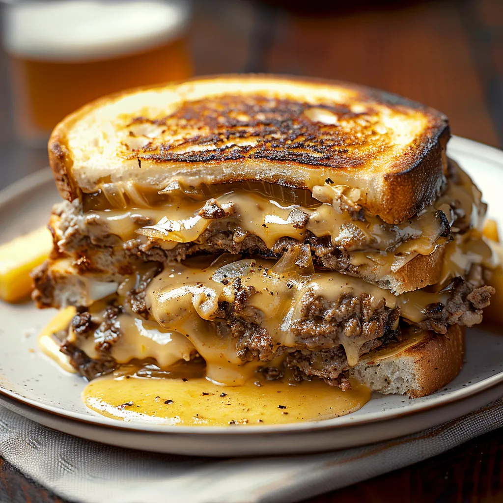 This patty melt recipe combines juicy beef patties, melted cheese, caramelized onions, and a unique secret sauce, creating a comforting and satisfying meal.