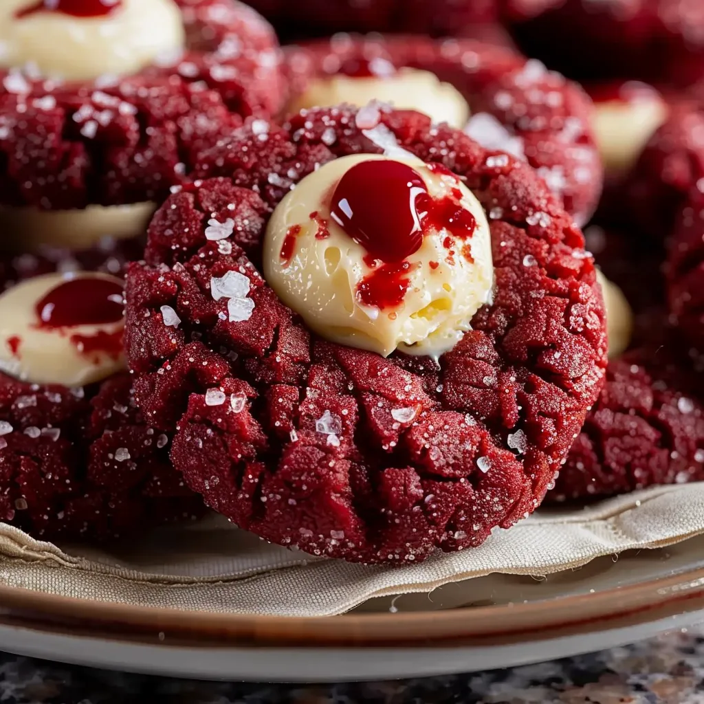 Keywords: Red Velvet Cookies, Cream Cheese Cookies, Dessert Recipes, Holiday Baking