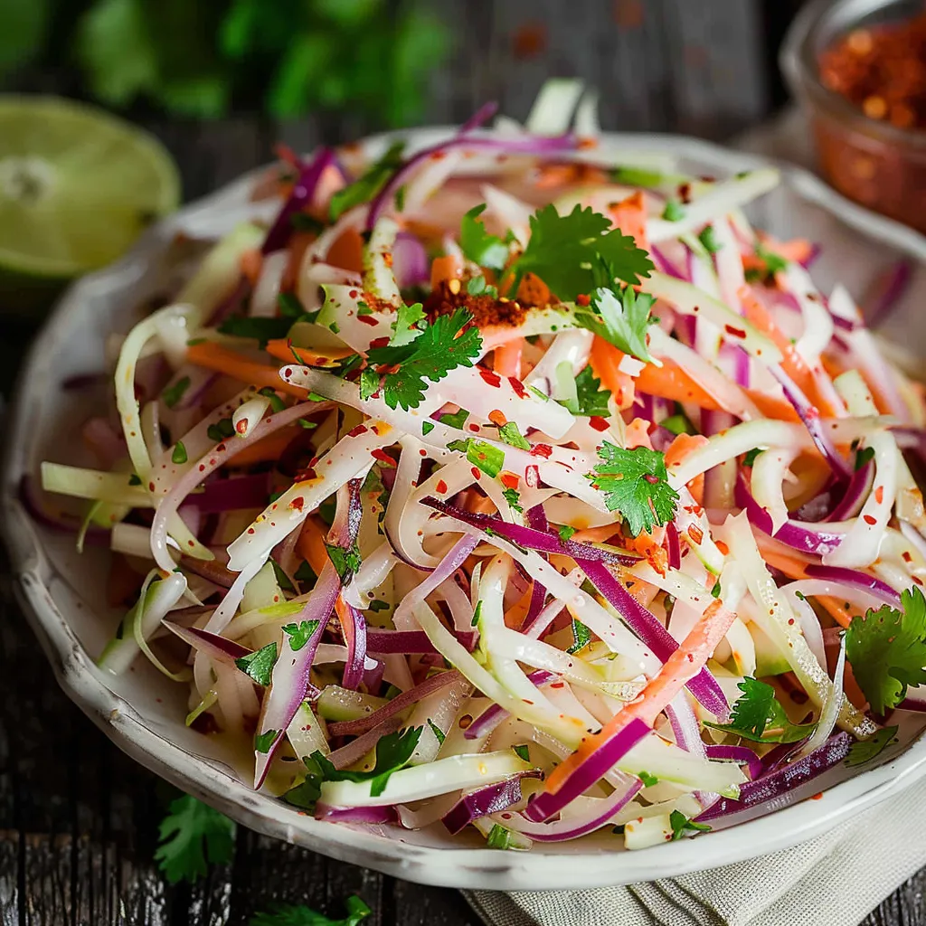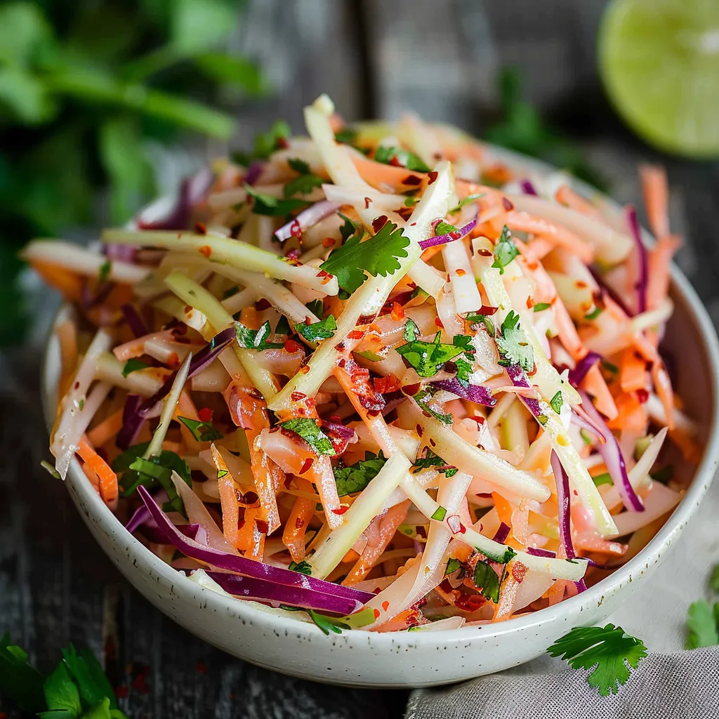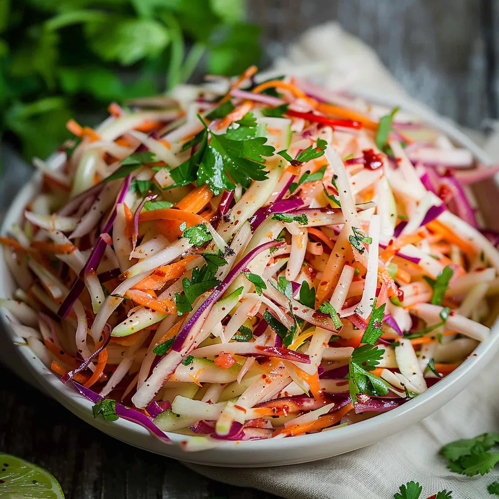 Picture this: as you take your first forkful, the crunch of the jicama hits you with a delightful snap, immediately followed by an explosion of fresh flavors. The zesty lime gives each bite an invigorating kick, while the cilantro adds an earthy brightness that balances everything beautifully. And oh, that sprinkle of chili powder? It’s like the cherry on top; it brings a warmth that lingers on your taste buds without overwhelming them. This slaw feels vibrant and refreshing — it’s an edible ode to summer. Each bite is reminiscent of lazy afternoons spent outdoors, laughter echoing in the background — pure joy!