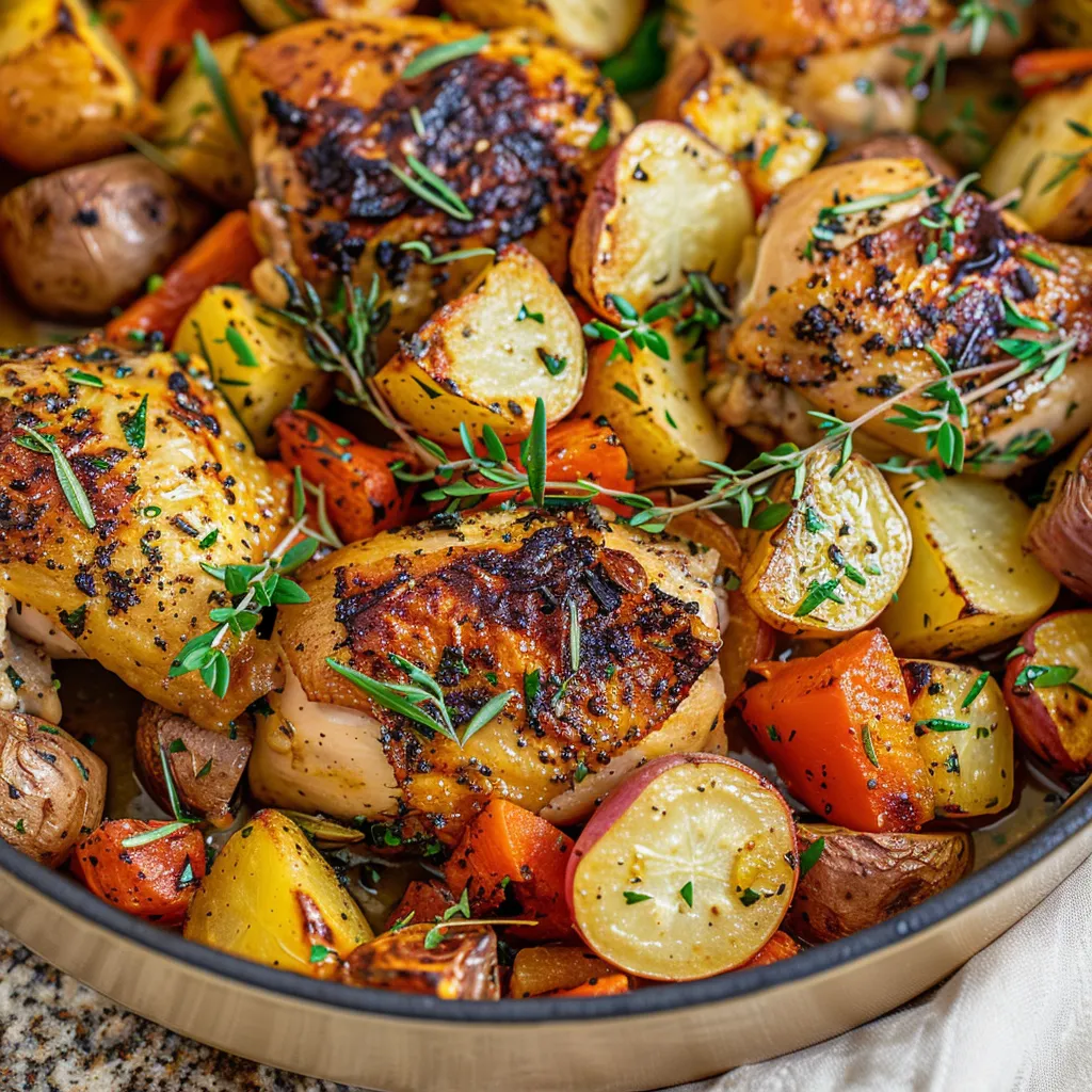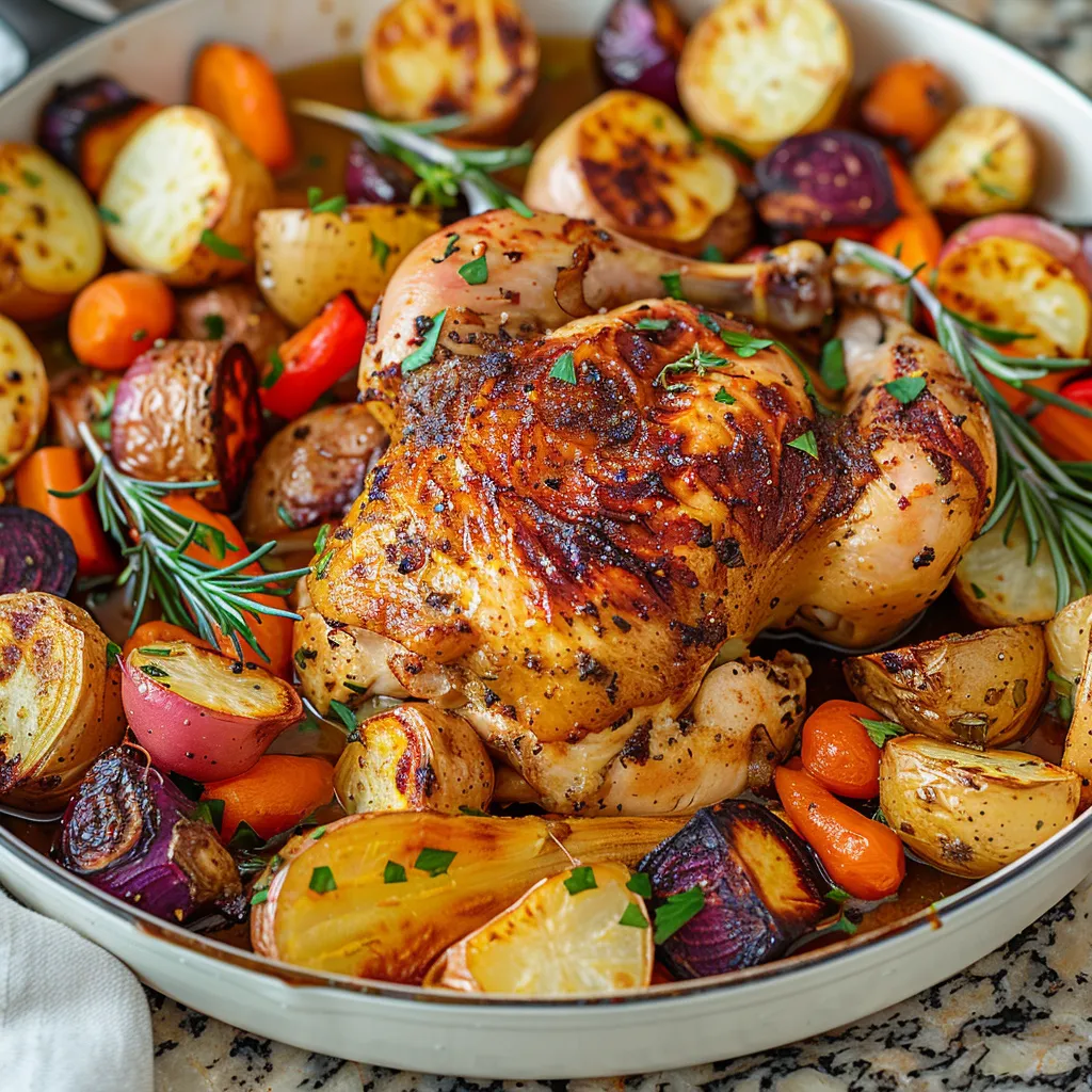 Savor the delight of tender Roast Chicken paired with hearty root veggies A perfect dish for comforting flavorpacked meals any day of the week