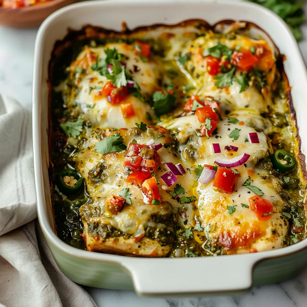 A comforting and zesty Salsa Verde Chicken Casserole perfect for sharing with loved ones.