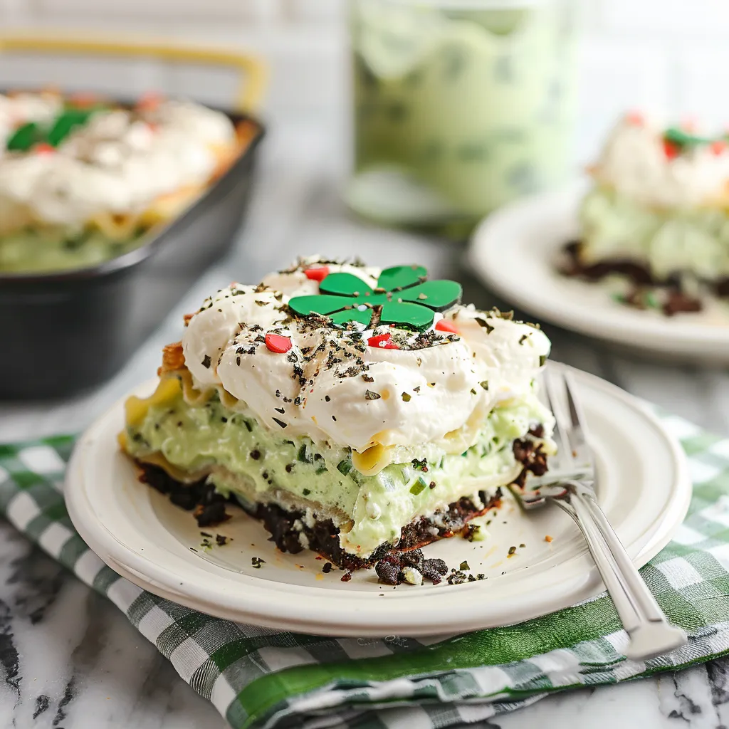 A delightful Shamrock Lasagna, inspired by St. Patrick’s Day flavors, combining spinach and creamy cheeses in layers of pasta for a comforting dish.