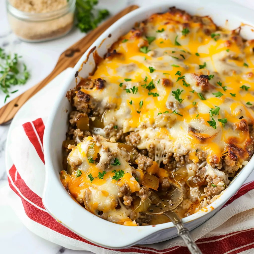 Savor this easy French Onion Ground Beef Casserole packed with rich flavors and comforting ingredients Perfect for weeknightstry it today