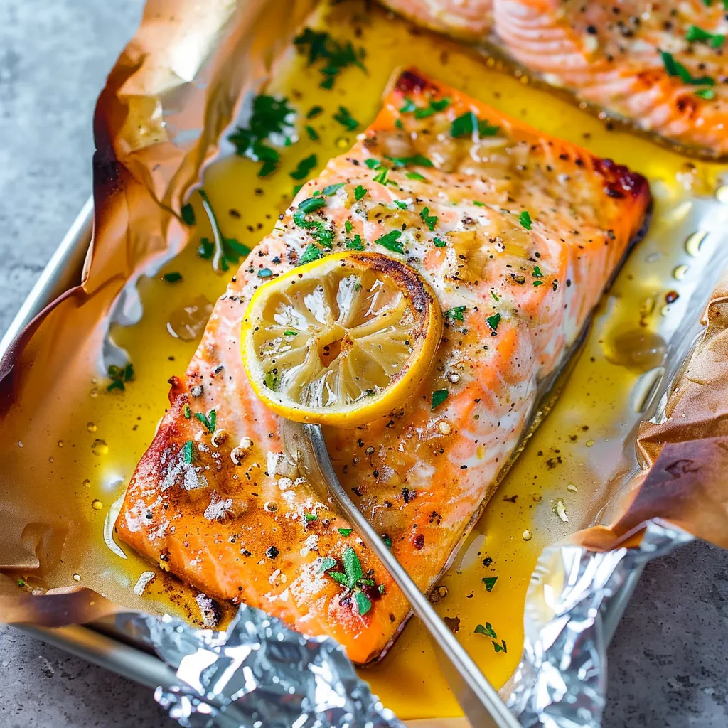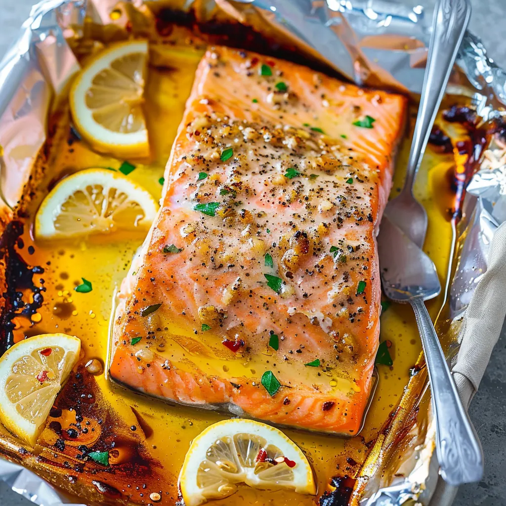 Keywords: salmon, lemon, garlic, butter, sheet pan meal, easy dinner, one-pan recipe
