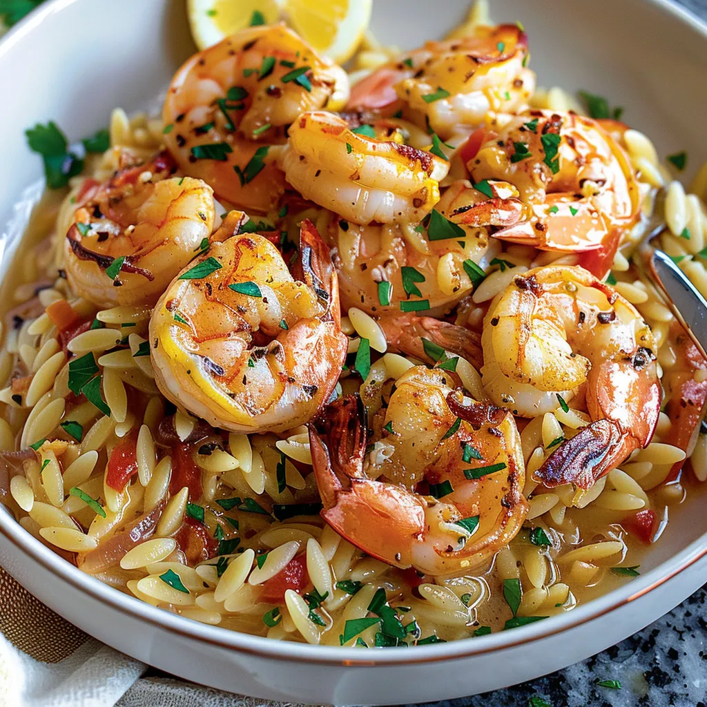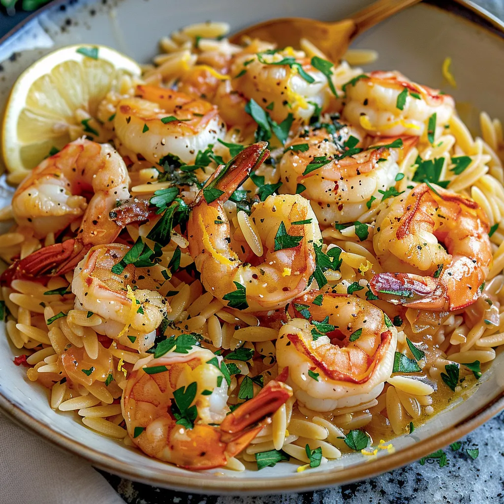Delicious Shrimp Orzo in Zesty Lemon Garlic Sauce Recipe