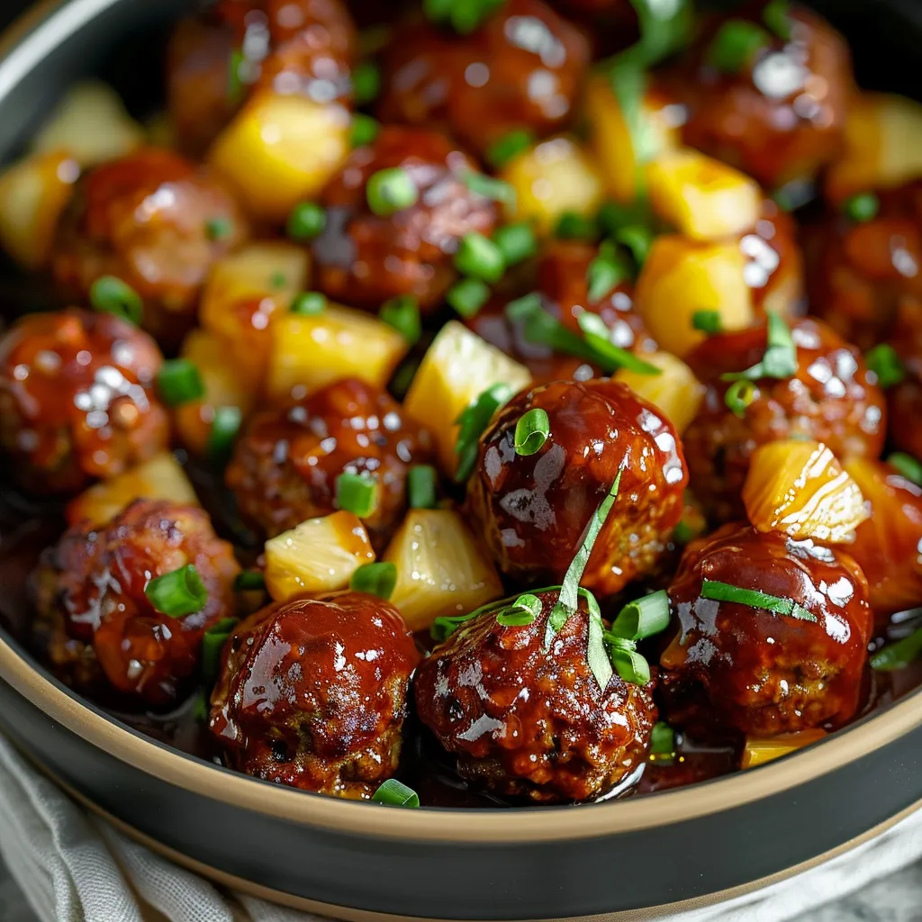 Savor easy Pineapple BBQ Meatballs made in a slow cooker Delicious flavor and minimal effort for the perfect party or weeknight meal