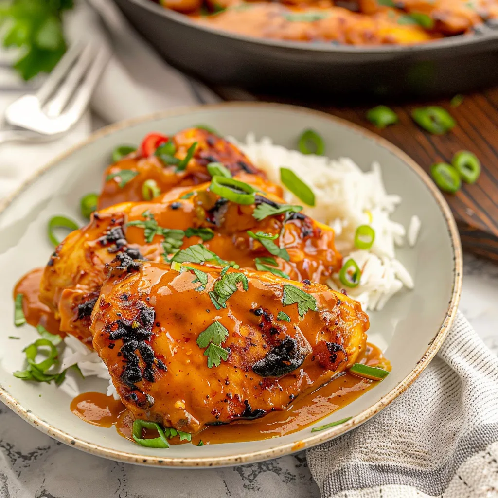 Imagine biting into tender chicken, the sweetness mingling with a fiery kick that leaves you wanting more. It’s like that first warm bite after a long day, wrapping you in a blanket of flavors that are both comforting and exciting. The heat from the spices sings in harmony with the earthy sweetness of brown sugar and honey, creating a melody on your palate. It’s an explosion of sensations: juicy, slightly sticky, and oh-so-delicious.