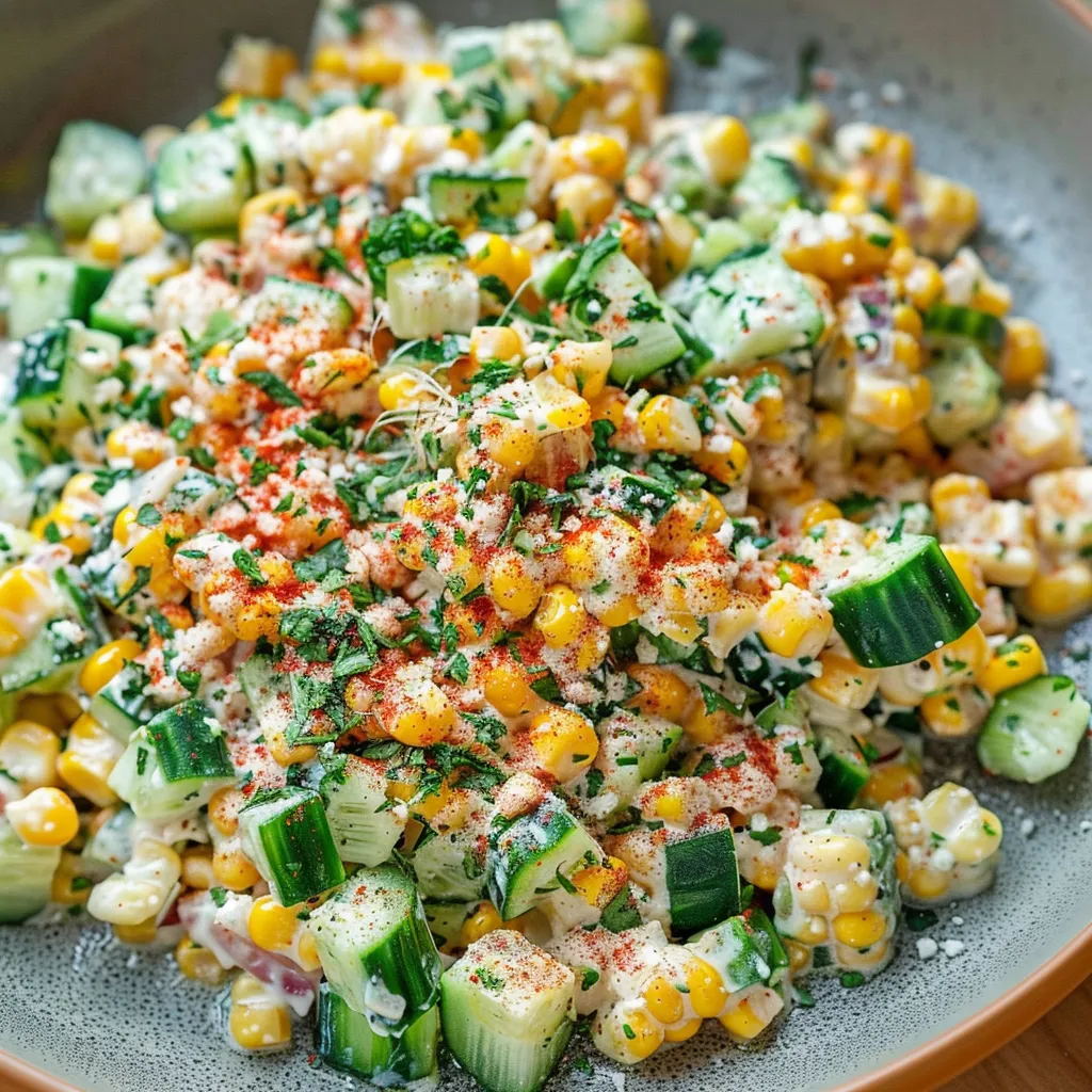 A delightful Street Corn Cucumber Salad that’s perfect for summer days, bringing a refreshing crunch and vibrant flavors to any gathering.