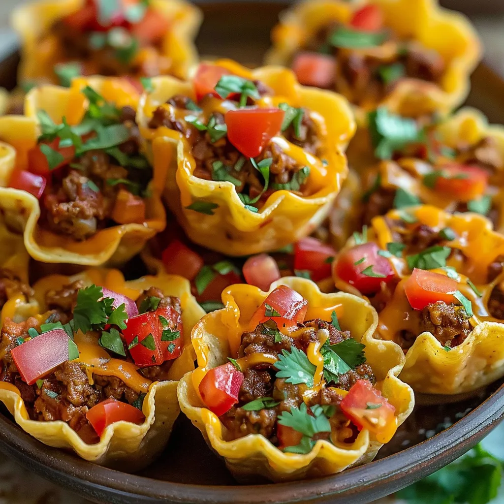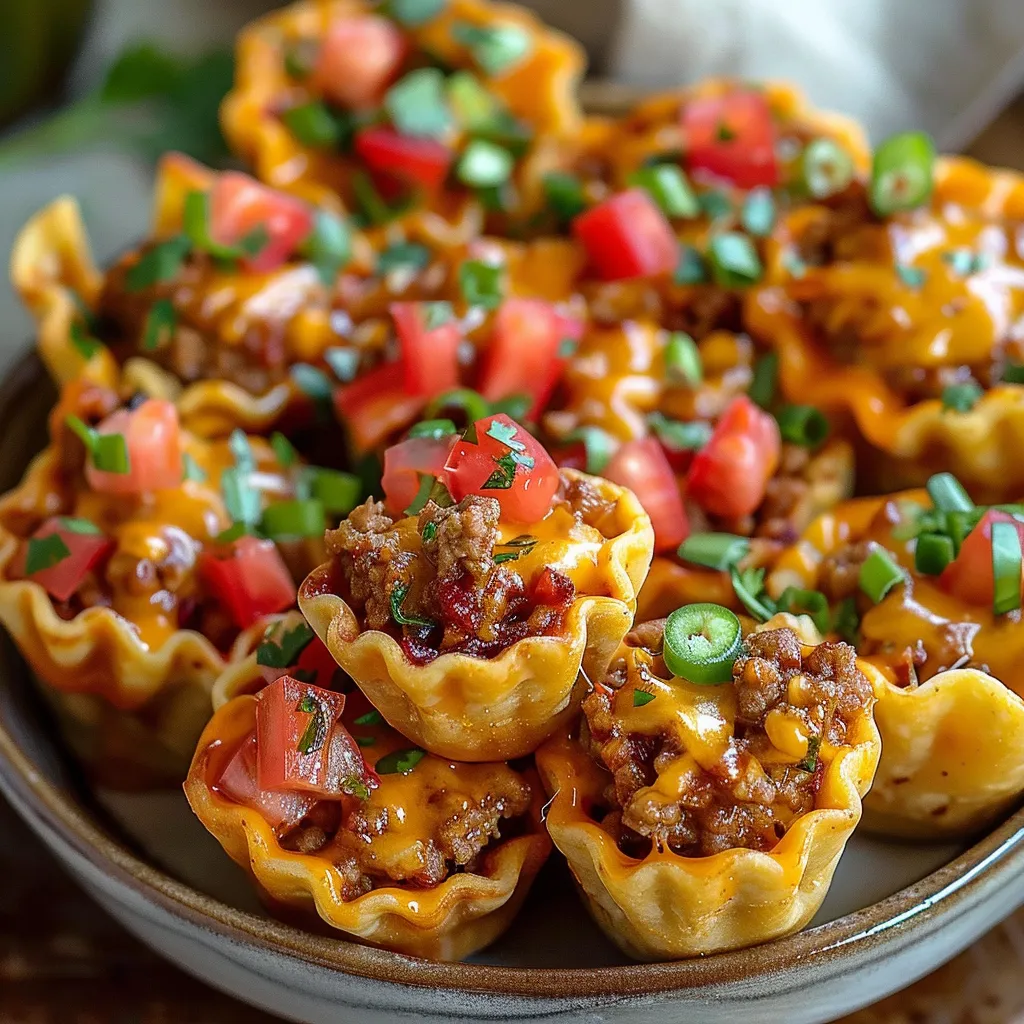 6. Fill the cups: Spoon the taco mixture evenly into each wonton cup, filling them generously but not overflowing.