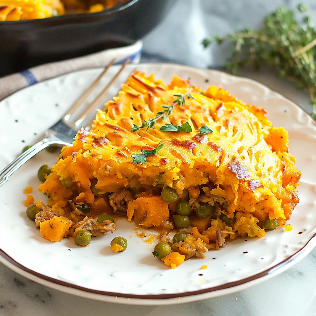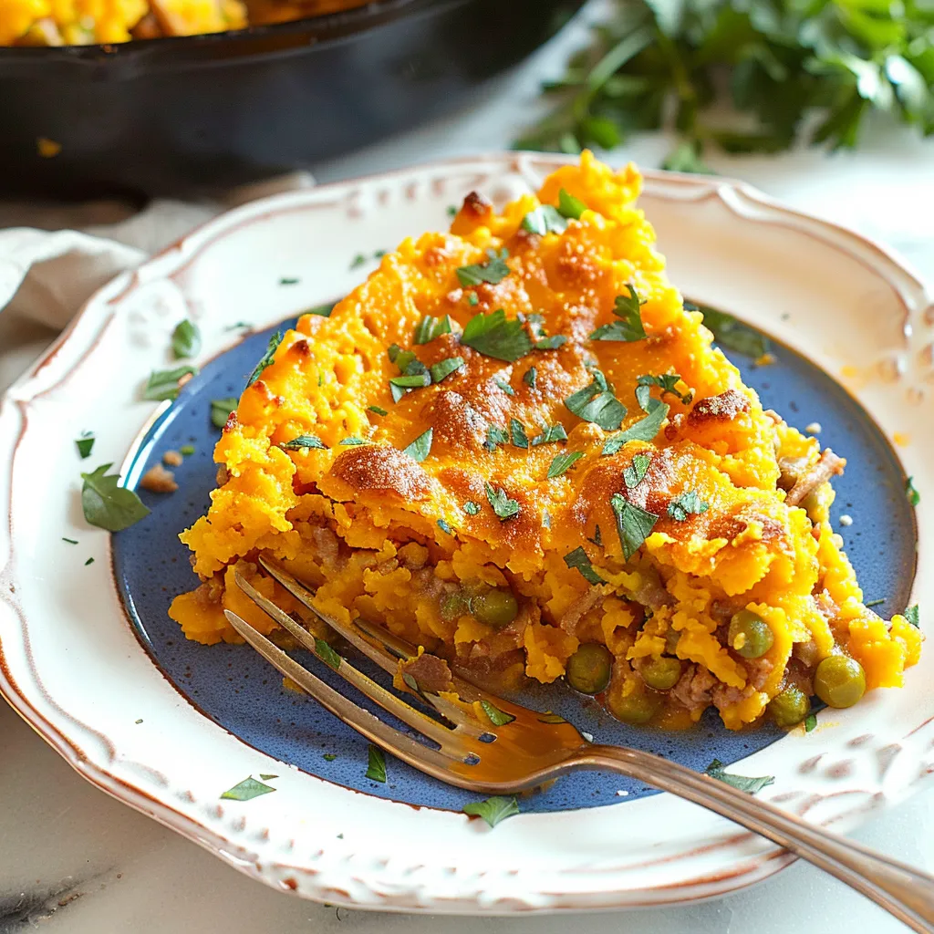 Imagine this: you take your first spoonful, and the creamy sweet potato topping gives way to a flavorful ground turkey filling that’s bursting with herbs and spices. Each layer plays its part — the sweet potatoes are smooth and slightly sweet, contrasting beautifully with the savory, herbaceous turkey mix. It’s like that first warm bite after a long day; it’s comforting and satisfying. The way the flavors meld together is like a delightful symphony for your taste buds. You get a hint of garlic, the warmth from cumin, and a sprinkle of thyme, all working harmoniously. It’s not overwhelming but refreshingly homey, making you feel like you should be wearing fuzzy socks and sipping hot cocoa while devouring a plateful!