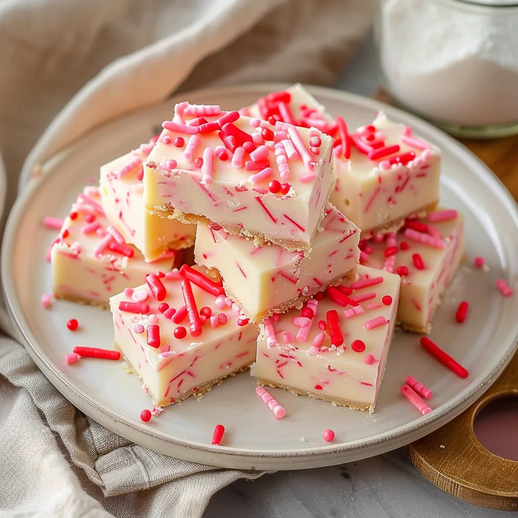 A delightful treat that combines the classic flavor of sugar cookies with the creamy texture of fudge, perfect for sharing on Valentine’s Day.