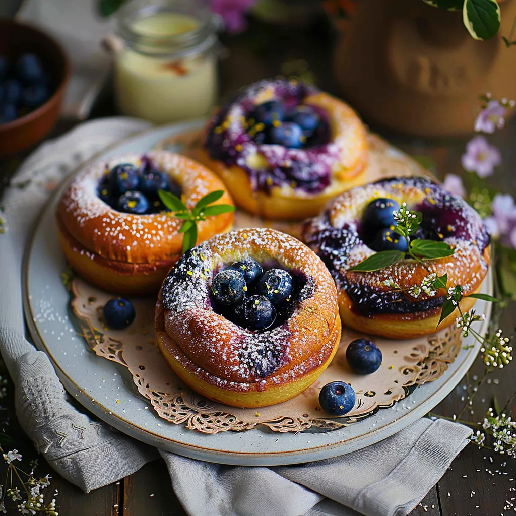 Now let’s talk taste. Imagine biting into that first bun, warm and soft, the sweetness of the blueberries hitting your palate with a burst of summery flavor, balanced perfectly by the richness of the ricotta. It’s like wrapping yourself in a fluffy, warm blanket after a long day — comforting, familiar, and absolutely satisfying. The sweetness envelops you while hints of vanilla and a touch of cinnamon playfully join the party. Each bun feels like a little celebration, and they pair oh-so-perfectly with your morning coffee or afternoon tea. Honestly, it’s one of those flavors that feels like a warm hug on a plate!